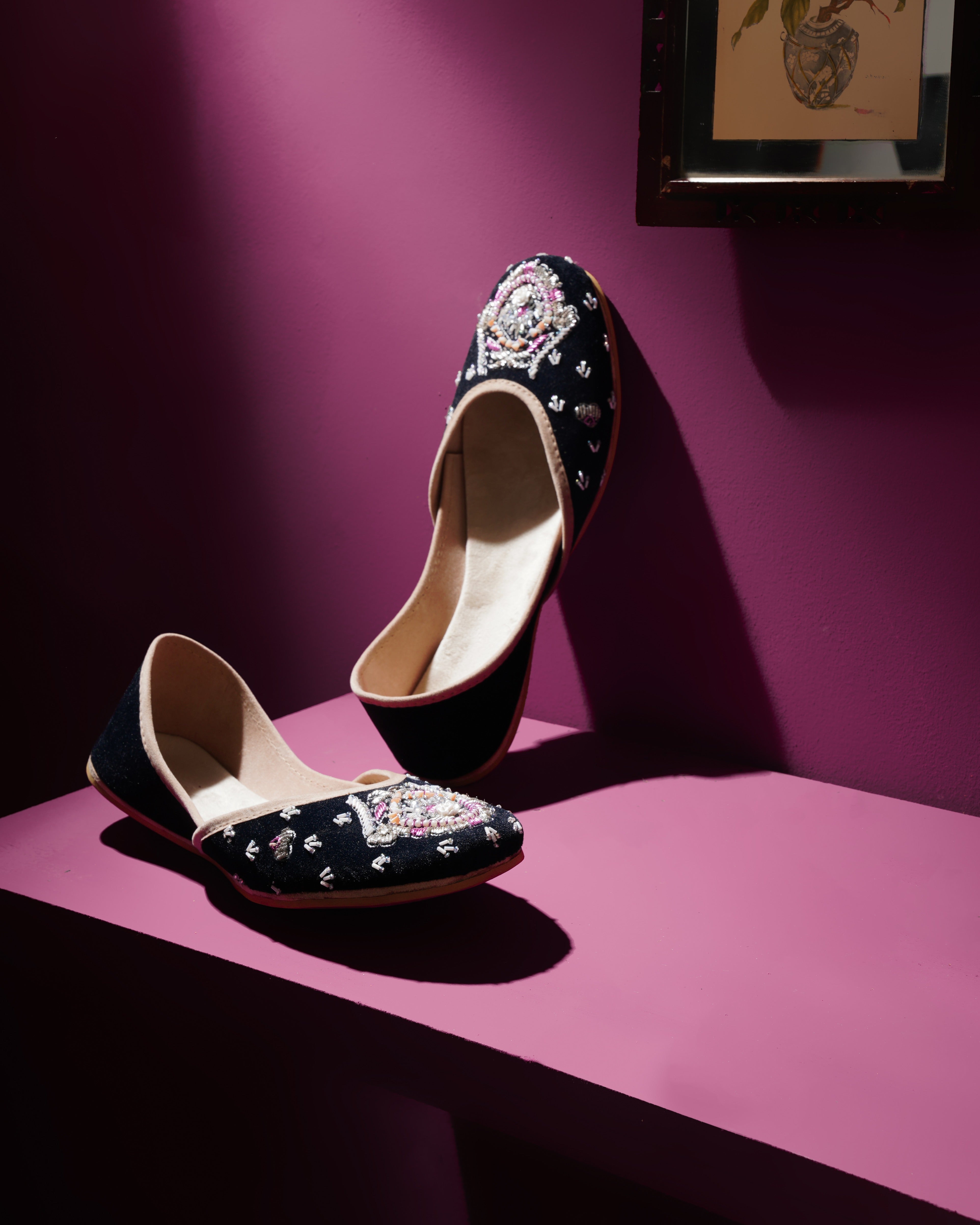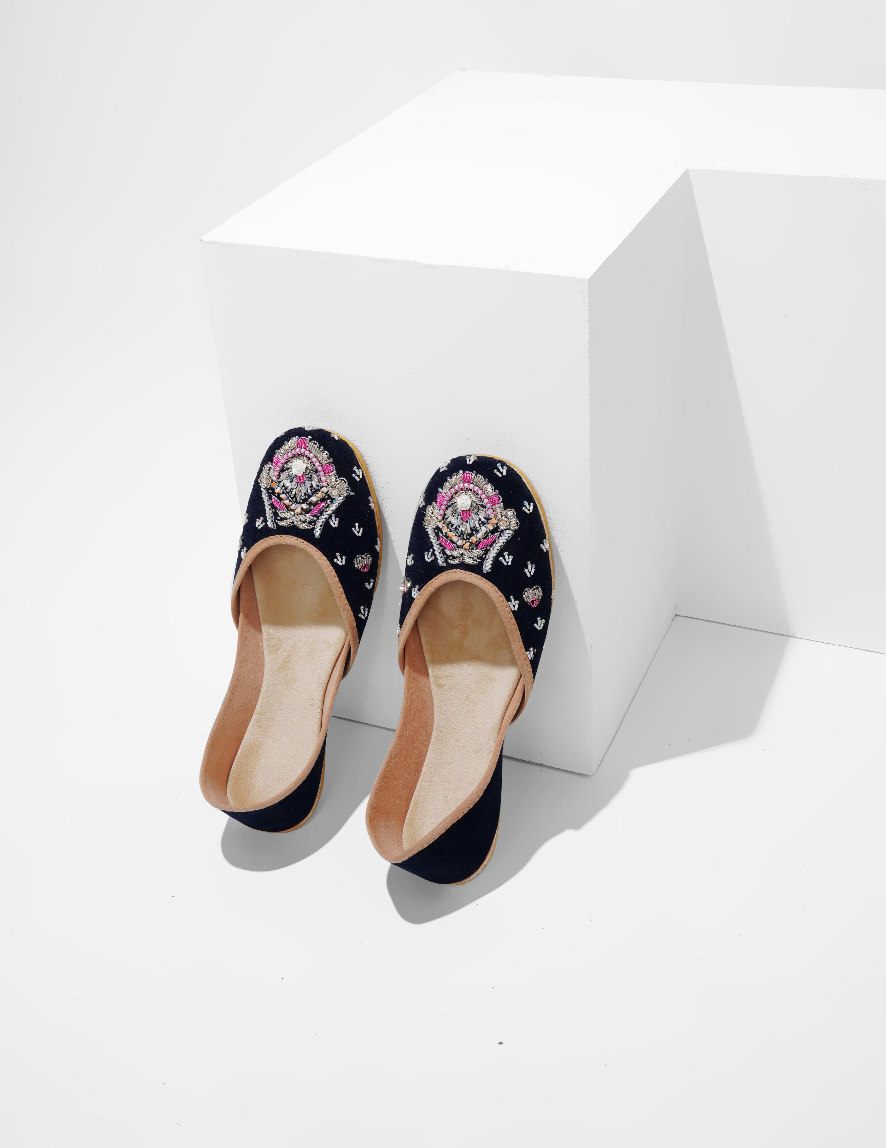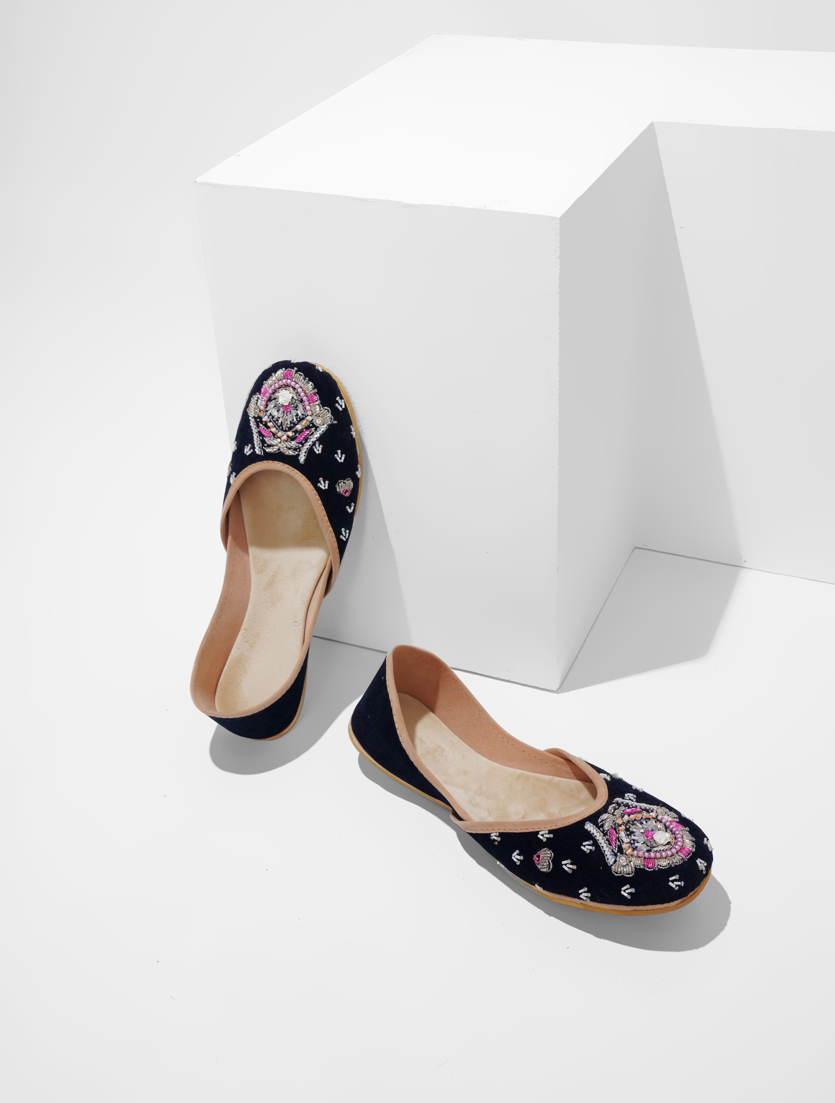 Crafted with top-quality materials, it is designed for all-purpose wear, ideal for any occasion or everyday use. The outsole is fashioned from premium rubber, ensuring not only comfortable walking but also slip resistance, providing added safety and peace of mind. This khussa/ Ballet flat is built to last, fashioned from pure hand processed leather that will withstand the test of time. The inner sole features a luxurious velvet lining, making it incredibly comfortable and snug for your feet.