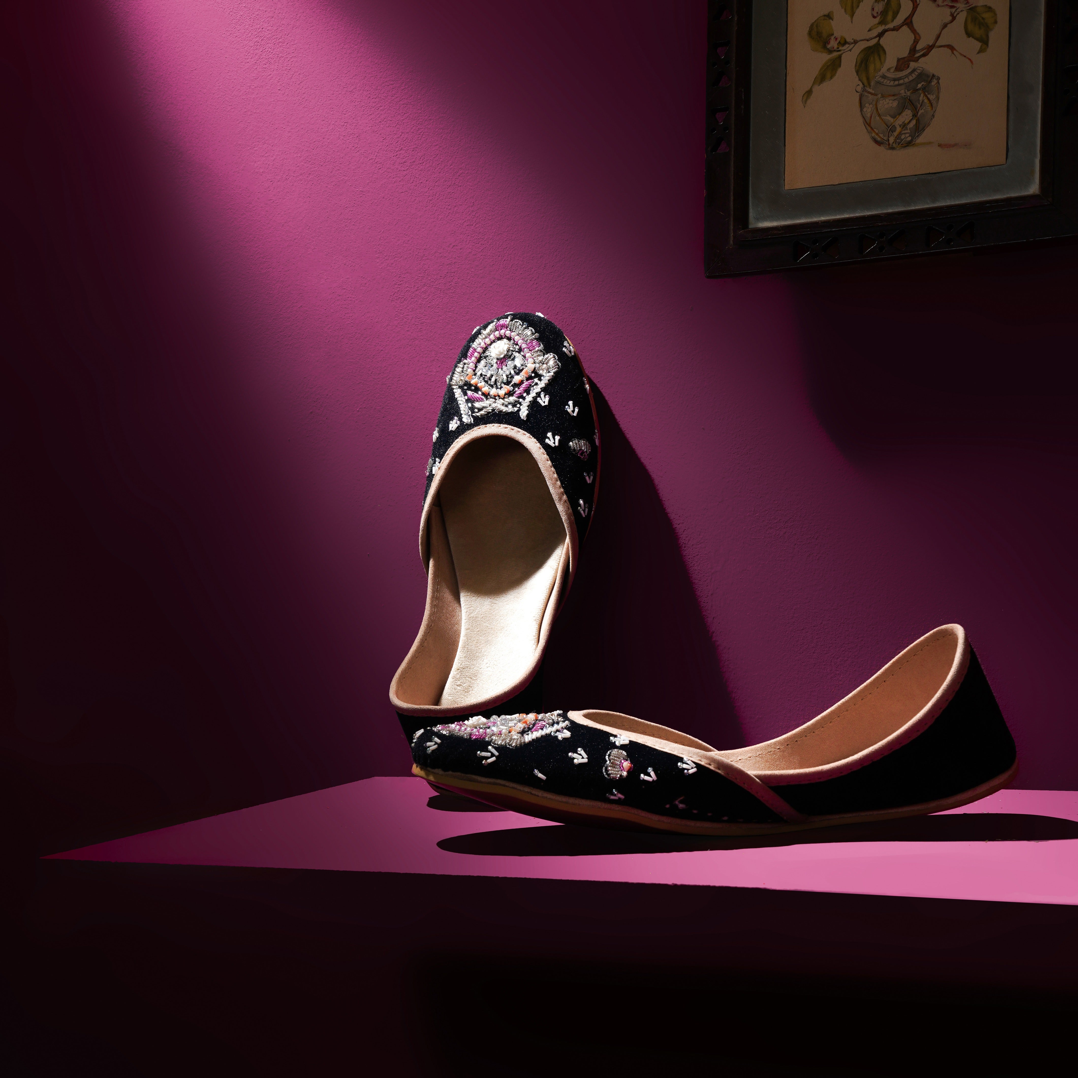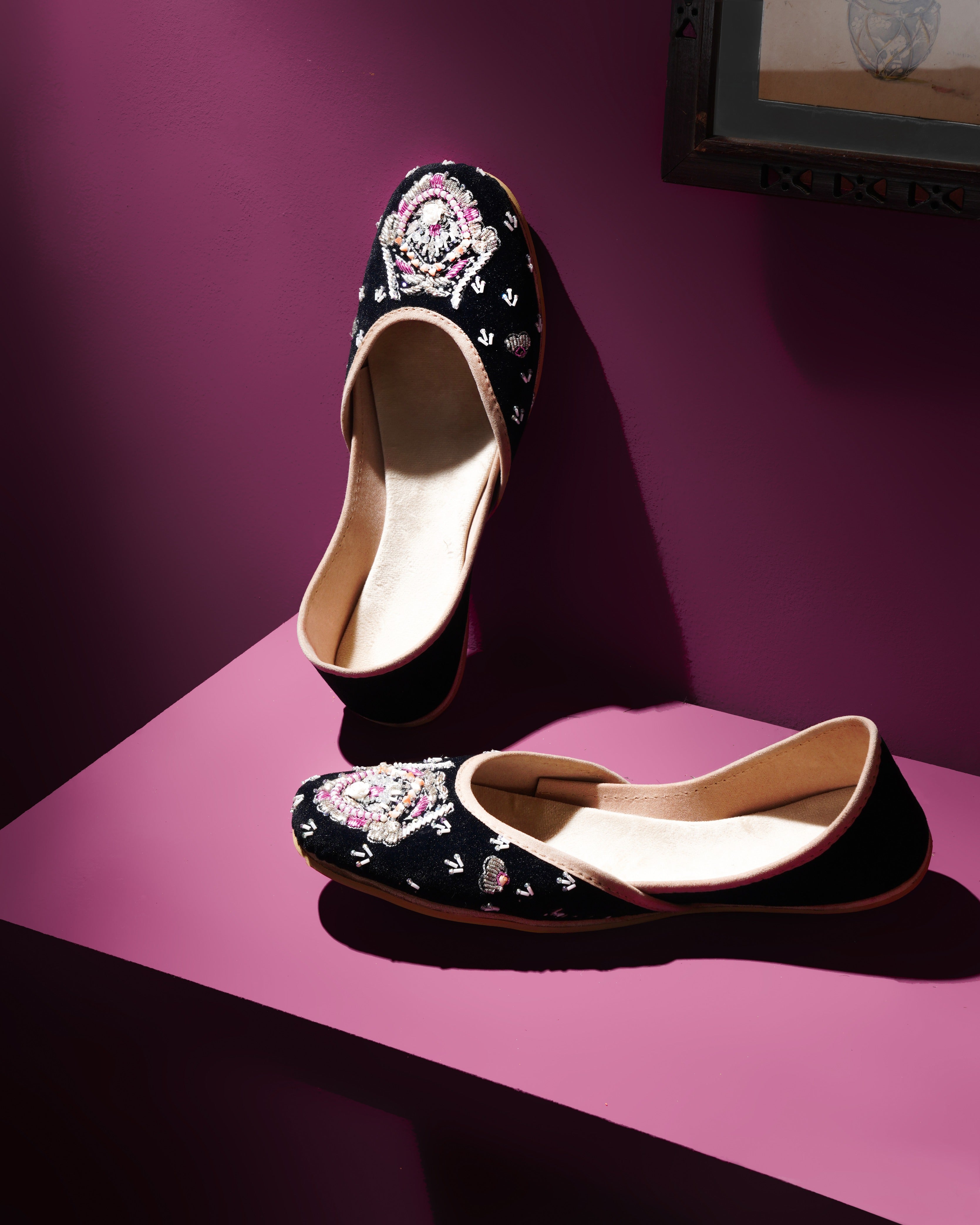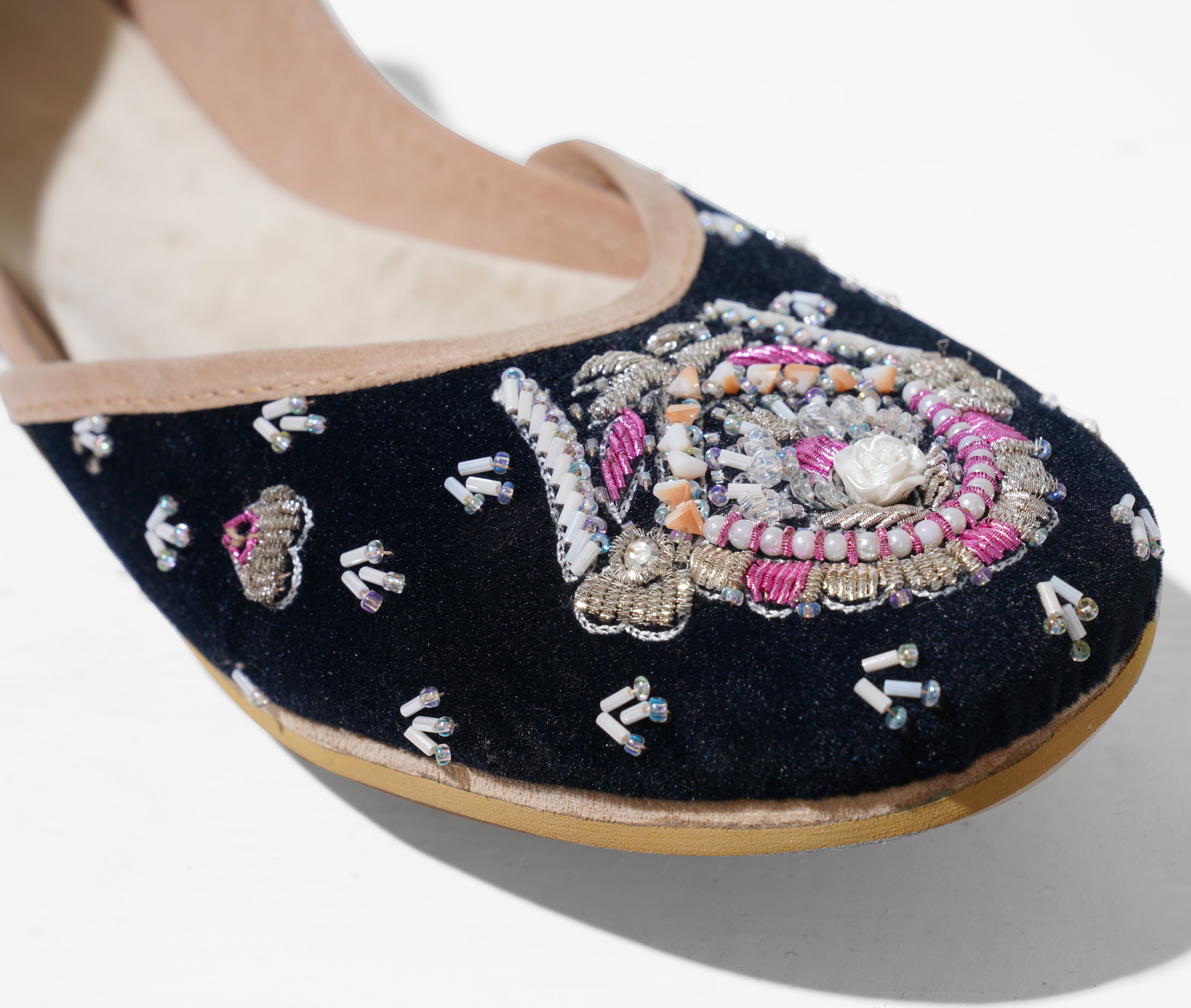 Crafted with top-quality materials, it is designed for all-purpose wear, ideal for any occasion or everyday use. The outsole is fashioned from premium rubber, ensuring not only comfortable walking but also slip resistance, providing added safety and peace of mind. This khussa/ Ballet flat is built to last, fashioned from pure hand processed leather that will withstand the test of time. The inner sole features a luxurious velvet lining, making it incredibly comfortable and snug for your feet.