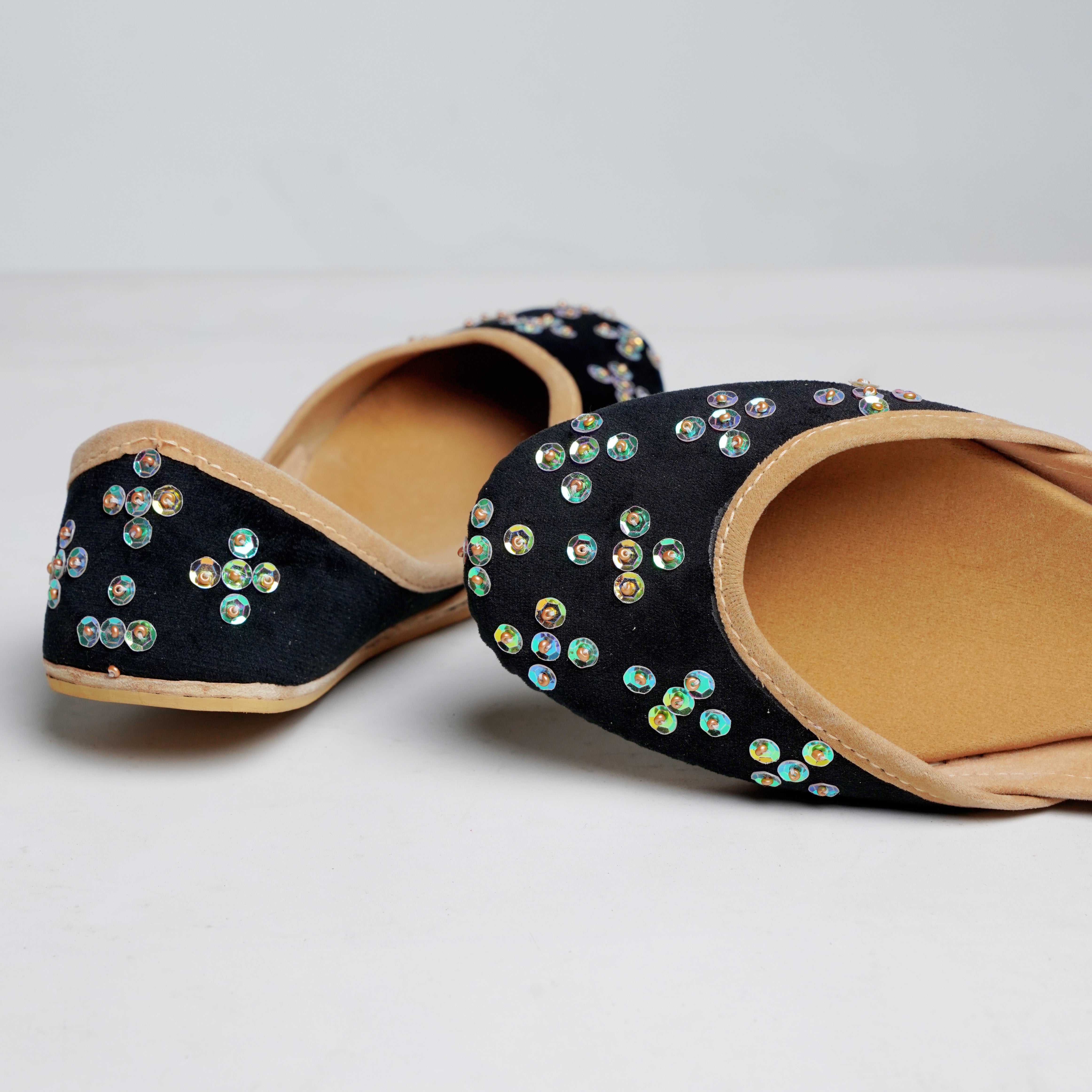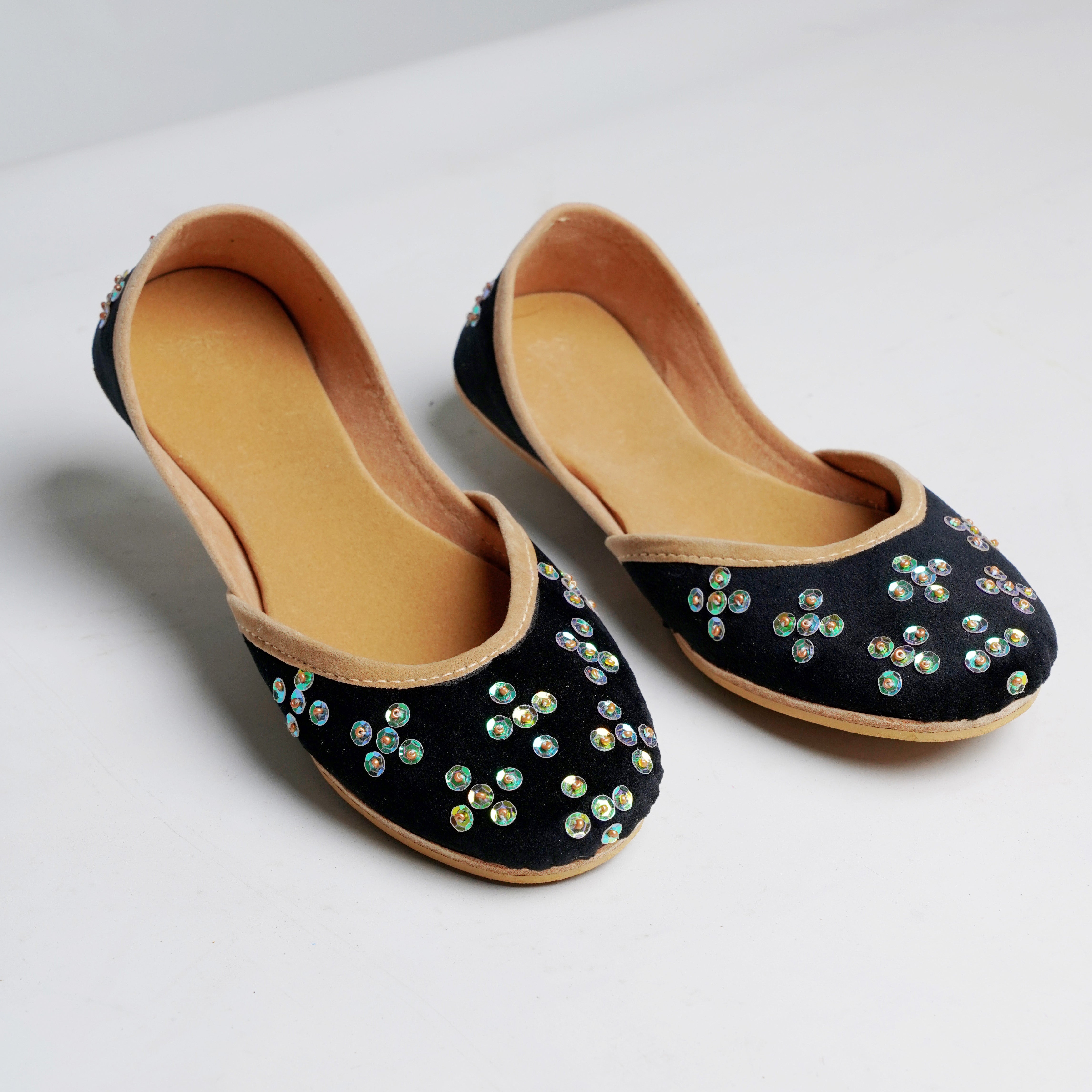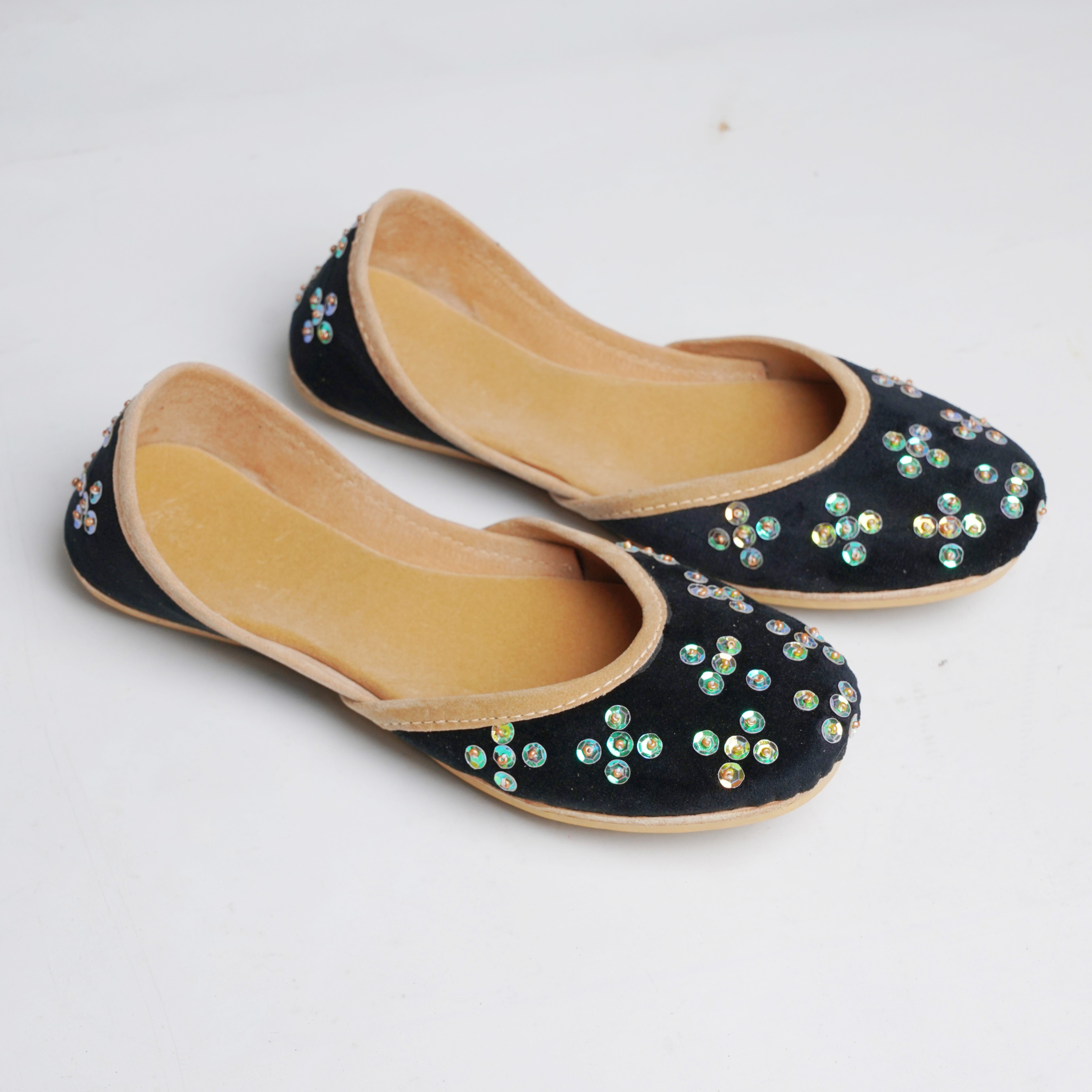 Crafted with top-quality materials, it is designed for all-purpose wear, ideal for any occasion or everyday use. The outsole is fashioned from premium rubber, ensuring not only comfortable walking but also slip resistance, providing added safety and peace of mind. This khussa/ Ballet flat is built to last, fashioned from pure hand processed leather that will withstand the test of time. The inner sole features a luxurious velvet lining, making it incredibly comfortable and snug for your feet.
