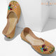 Delicate yet intricate embroidery of ‘phool’ crafted on a dark solid base, highlighted with orange and yellow embroidered leaves is treasure that’s a must have for your wardrobe! Inspired by the beautiful Kashmiri handicraft of 'Pashmina' our Khussa is an ode to the union of two of India's most treasured crafts- Jamadar and Jutti making. This pair promises to leave you and everyone around in an awe because of its elegant beauty that shines through a delicate design of leaves twined spreading across the khussa.