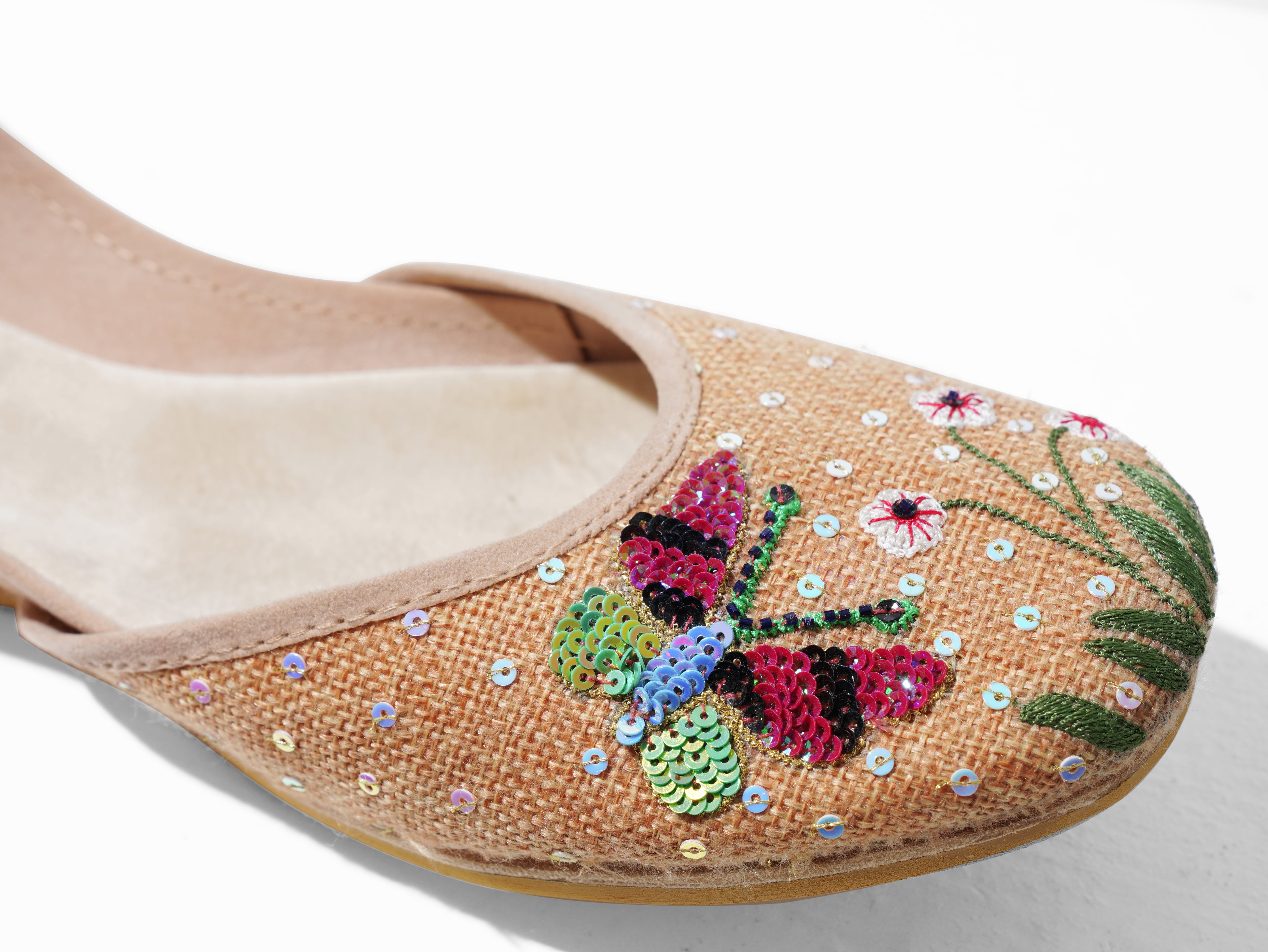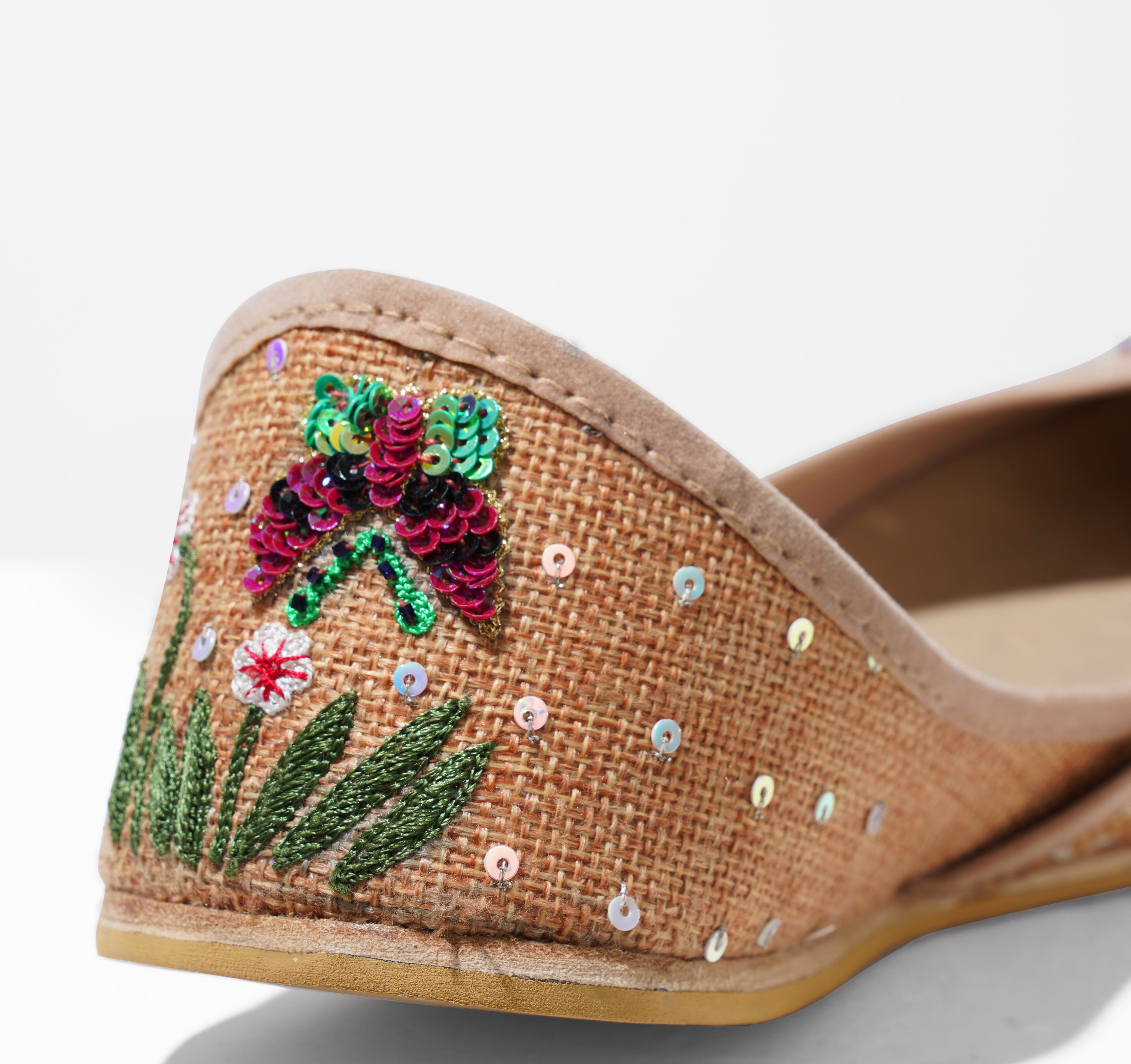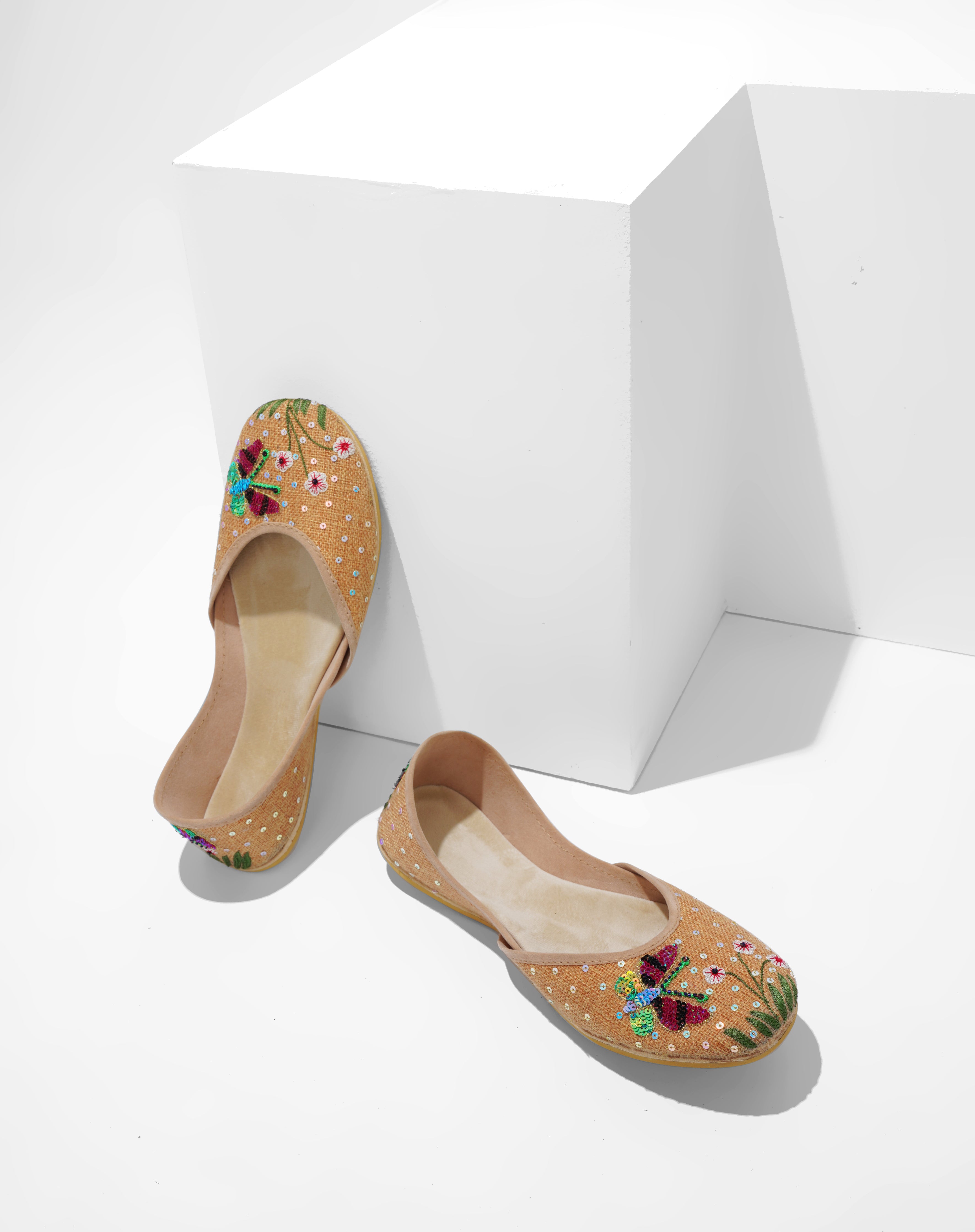 Crafted with top-quality materials, it is designed for all-purpose wear, ideal for any occasion or everyday use. The outsole is fashioned from premium rubber, ensuring not only comfortable walking but also slip resistance, providing added safety and peace of mind. This khussa/ Ballet flat is built to last, fashioned from pure hand processed leather that will withstand the test of time. The inner sole features a luxurious velvet lining, making it incredibly comfortable and snug for your feet.