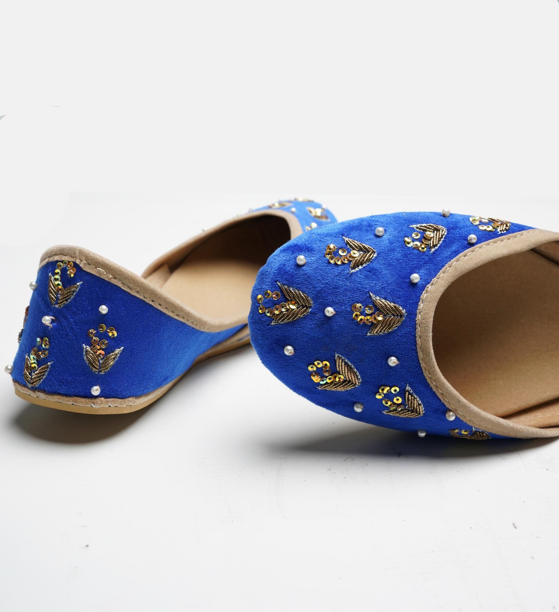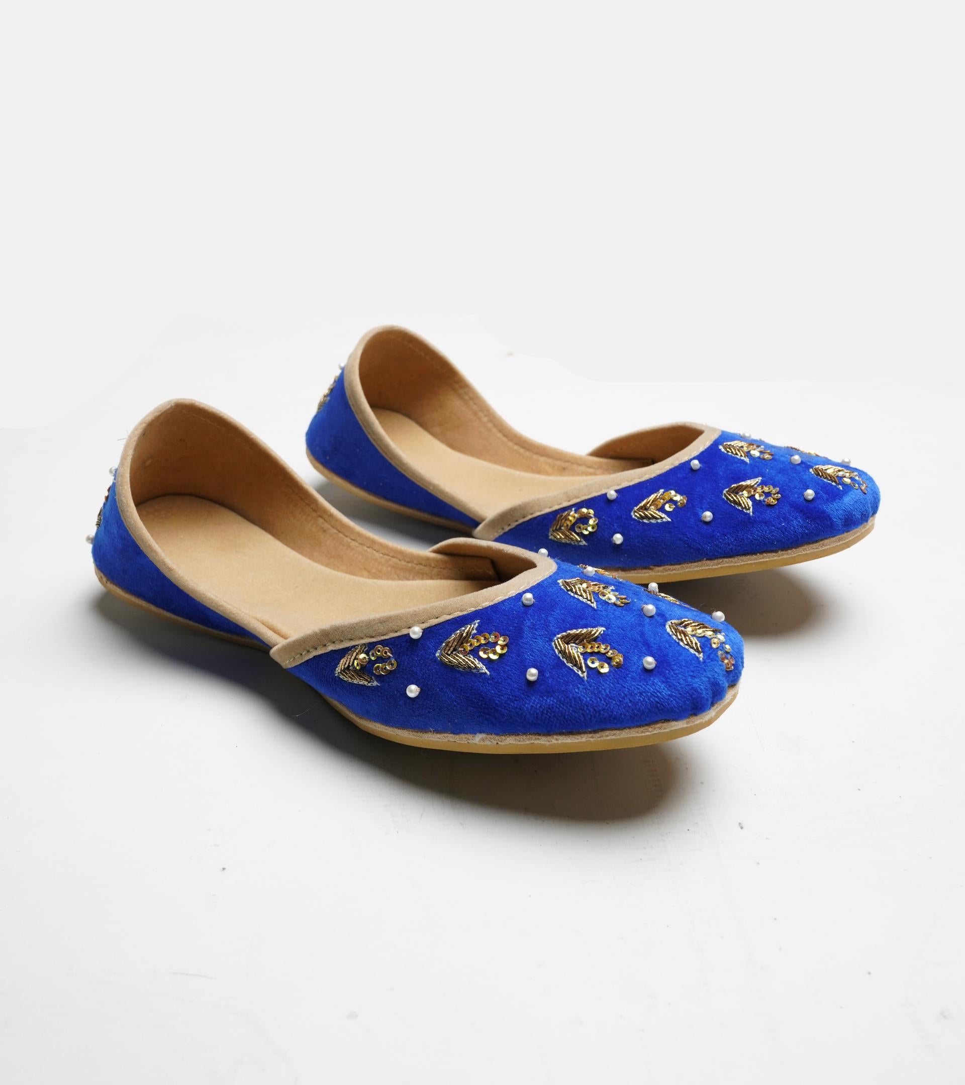 Crafted with top-quality materials, it is designed for all-purpose wear, ideal for any occasion or everyday use. The outsole is fashioned from premium rubber, ensuring not only comfortable walking but also slip resistance, providing added safety and peace of mind. This khussa/ Ballet flat is built to last, fashioned from pure hand processed leather that will withstand the test of time. The inner sole features a luxurious velvet lining, making it incredibly comfortable and snug for your feet.
