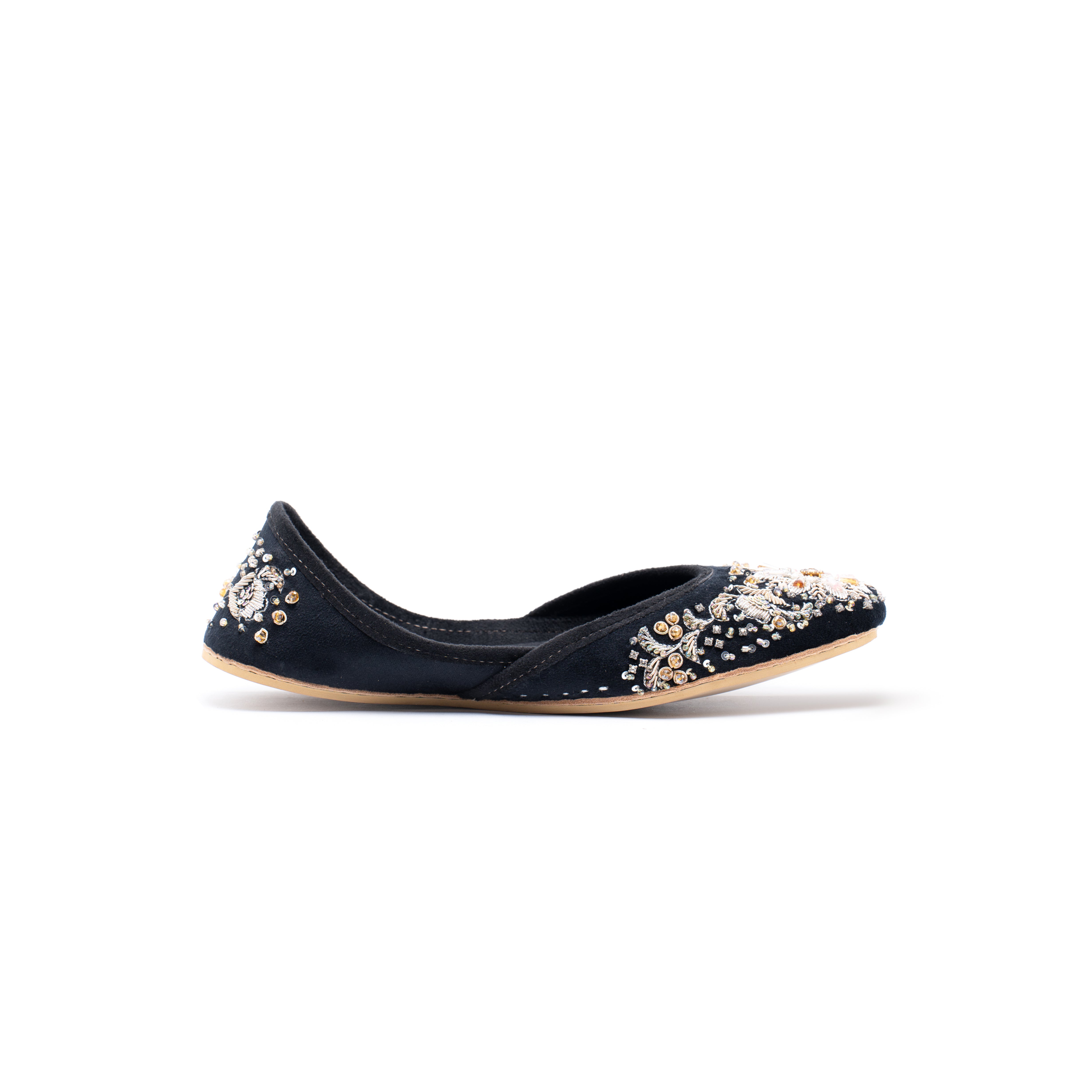 Crafted with top-quality materials, it is designed for all-purpose wear, ideal for any occasion or everyday use. The outsole is fashioned from premium rubber, ensuring not only comfortable walking but also slip resistance, providing added safety and peace of mind. This khussa/ Ballet flat is built to last, fashioned from pure hand processed leather that will withstand the test of time. The inner sole features a luxurious velvet lining, making it incredibly comfortable and snug for your feet.