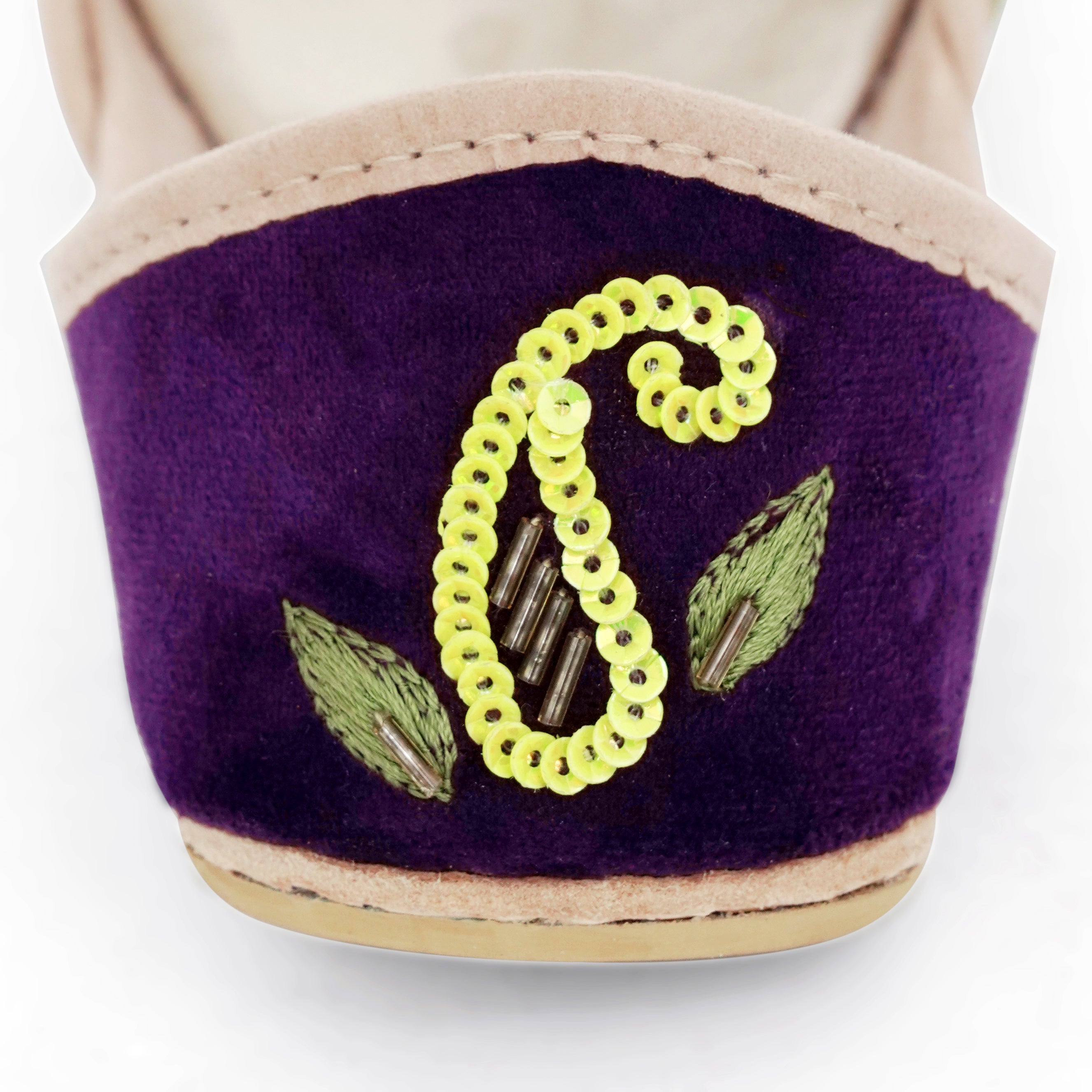 Crafted with top-quality materials, it is designed for all-purpose wear, ideal for any occasion or everyday use. The outsole is fashioned from premium rubber, ensuring not only comfortable walking but also slip resistance, providing added safety and peace of mind. This khussa/ Ballet flat is built to last, fashioned from pure hand processed leather that will withstand the test of time. The inner sole features a luxurious velvet lining, making it incredibly comfortable and snug for your feet.