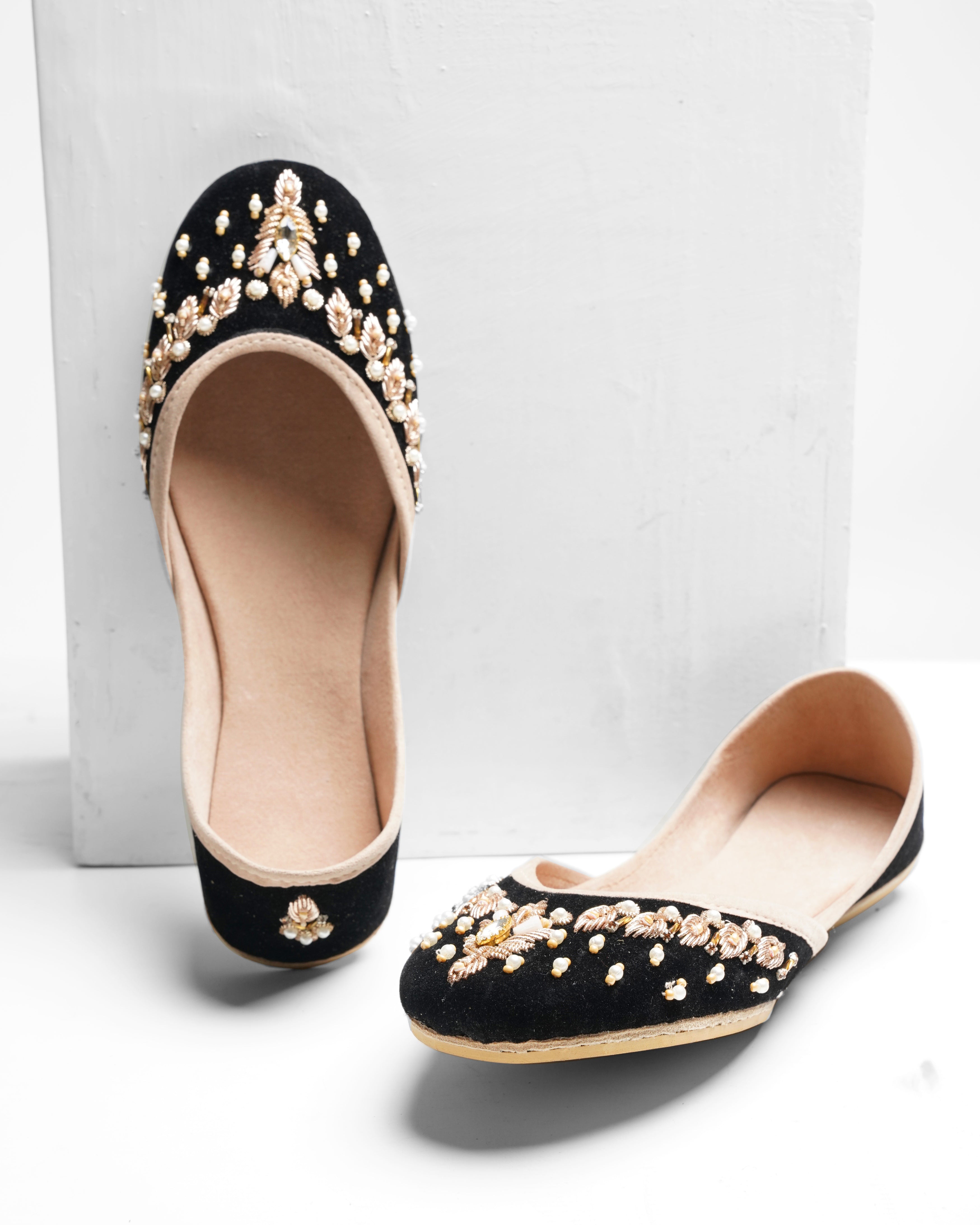 We value your comfort and aim to exceed your expectations in every way possible. Our team spends over 40 hours in designing and hand-making /Ballet Flat/Khussas for you to wear. Crafted with utmost care and premium materials, our Ballet Flats/khussas ensure a captivating design and superior comfort. The velvet base provides a plush and cozy fit, while the thoughtful construction guarantees a secure and comfortable wearing experience.