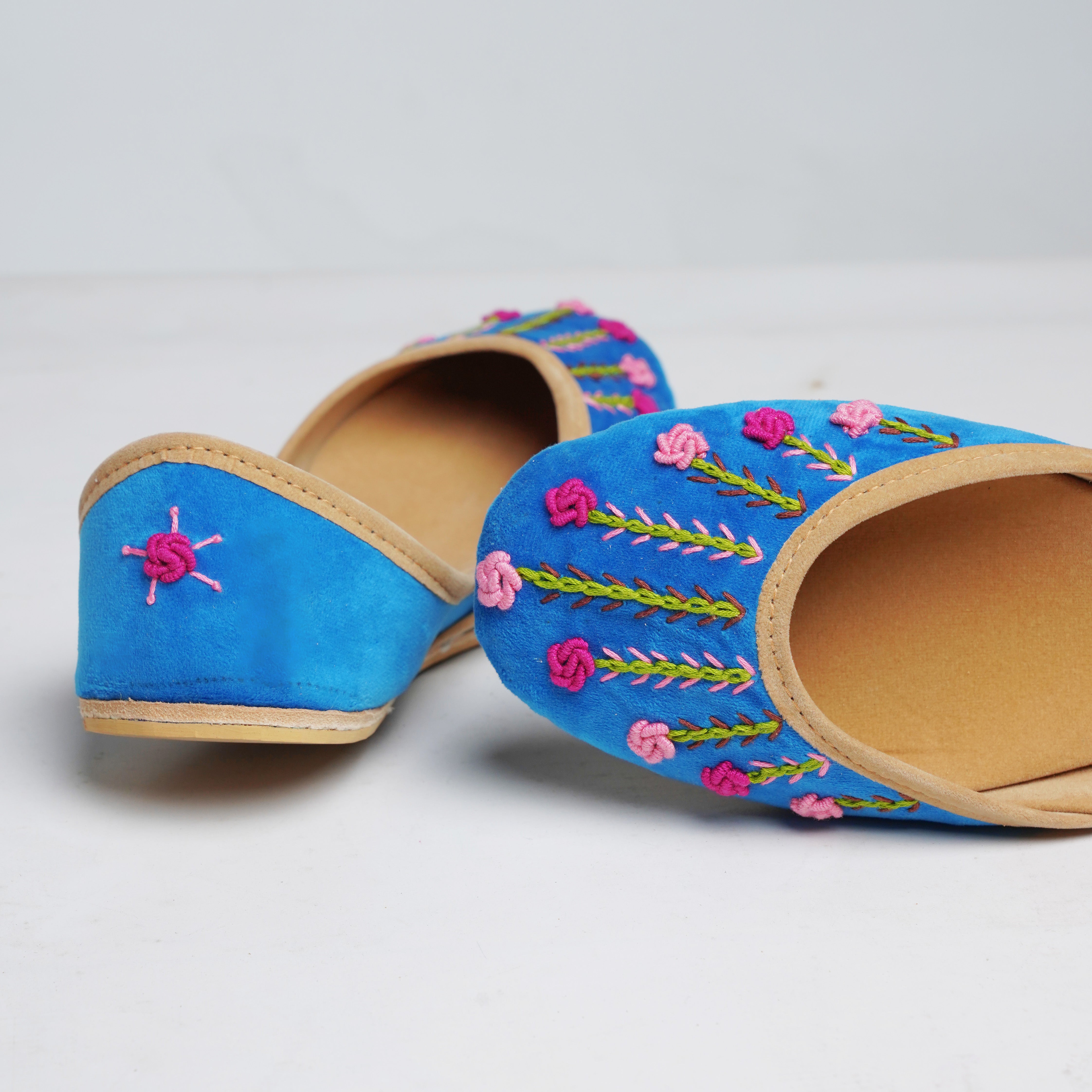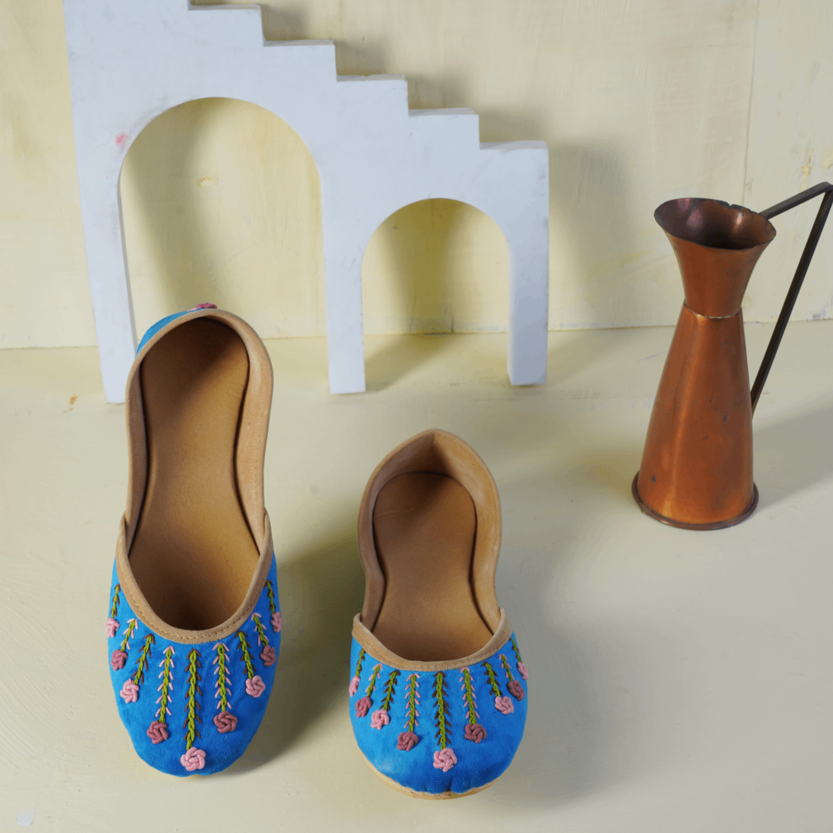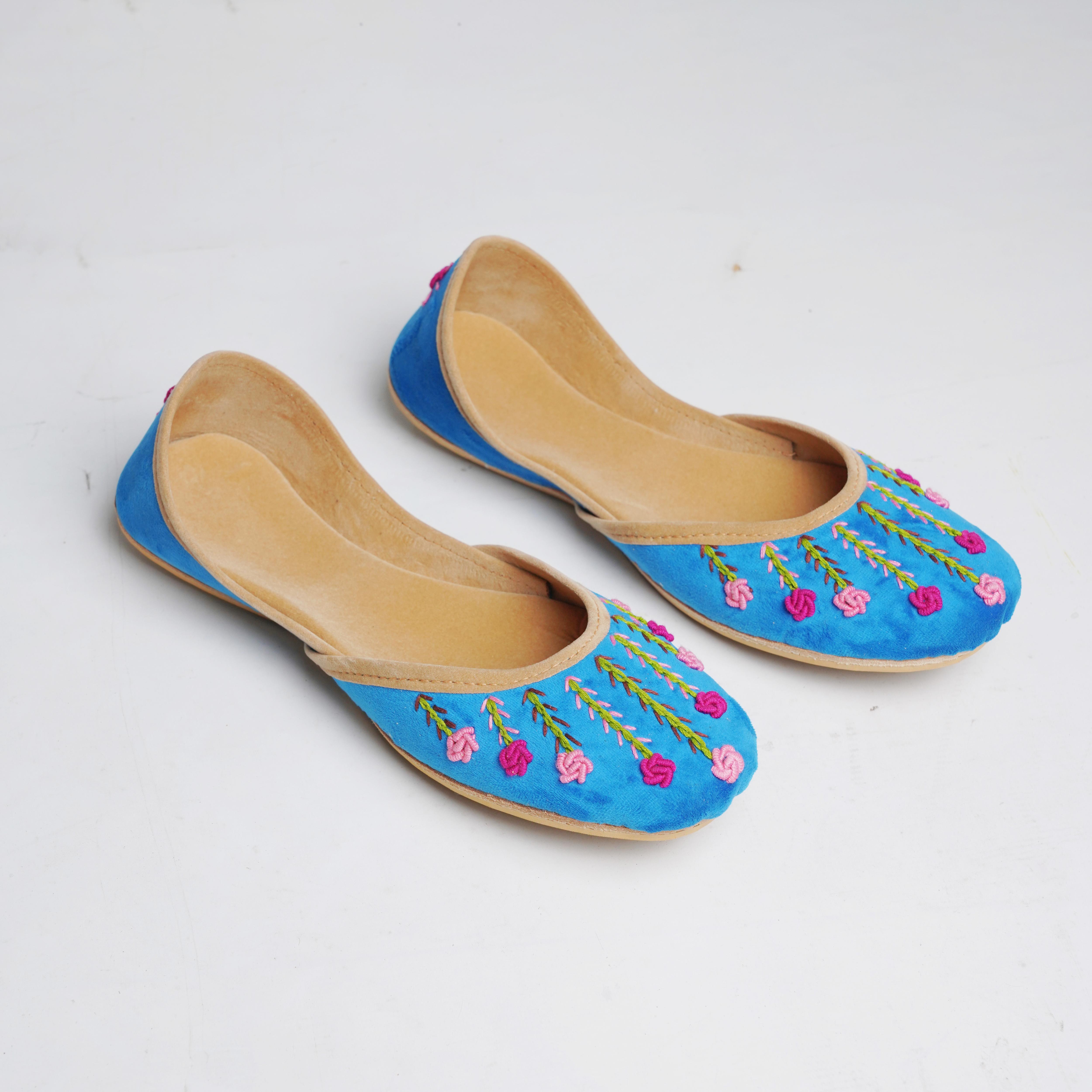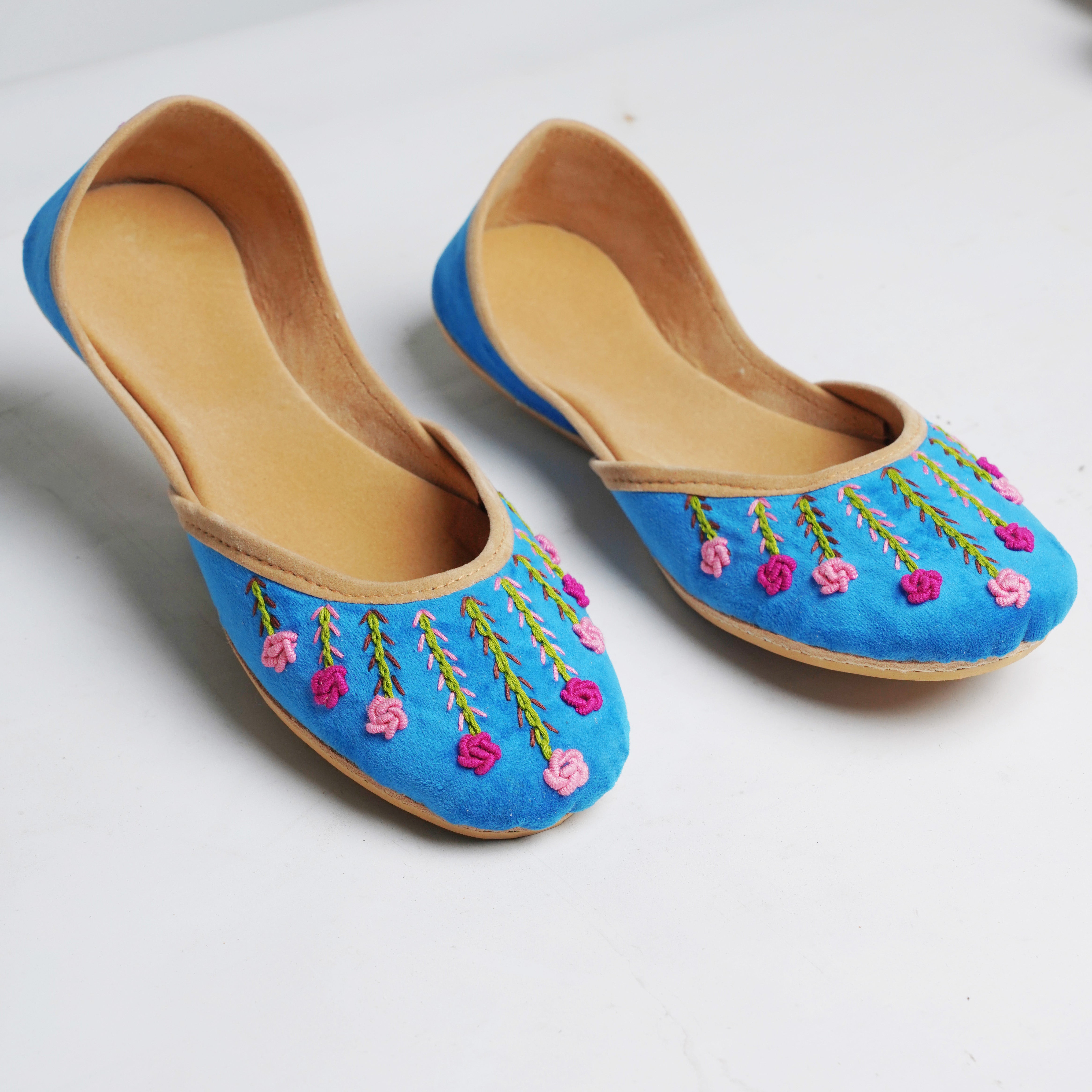 Crafted with top-quality materials, it is designed for all-purpose wear, ideal for any occasion or everyday use. The outsole is fashioned from premium rubber, ensuring not only comfortable walking but also slip resistance, providing added safety and peace of mind. This khussa/ Ballet flat is built to last, fashioned from pure hand processed leather that will withstand the test of time. The inner sole features a luxurious velvet lining, making it incredibly comfortable and snug for your feet.