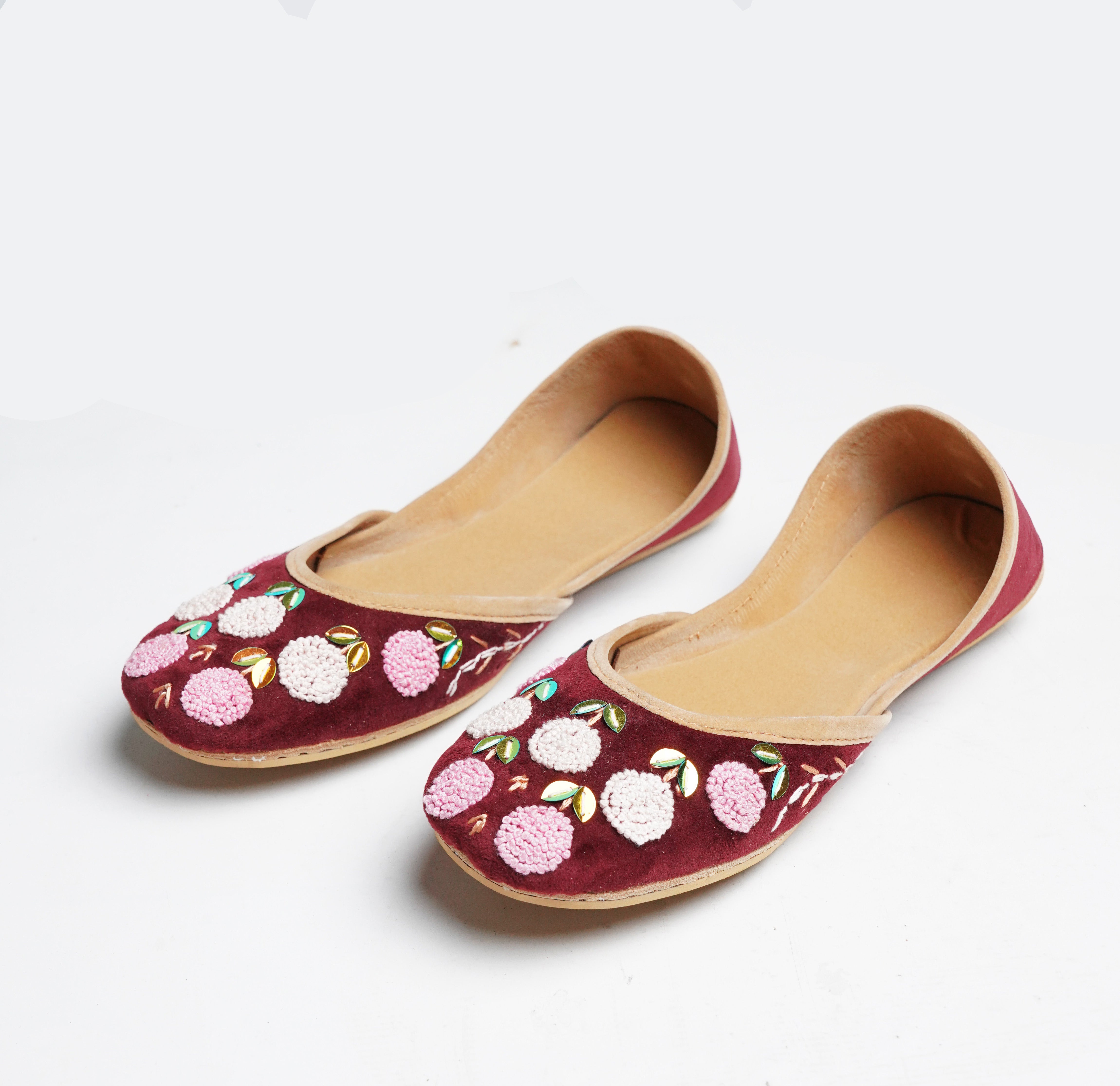 Crafted with top-quality materials, it is designed for all-purpose wear, ideal for any occasion or everyday use. The outsole is fashioned from premium rubber, ensuring not only comfortable walking but also slip resistance, providing added safety and peace of mind. This khussa/ Ballet flat is built to last, fashioned from pure hand processed leather that will withstand the test of time. The inner sole features a luxurious velvet lining, making it incredibly comfortable and snug for your feet.