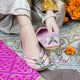 Nilam is a sky-blue Khussa with silver and golden Dabka and Cora work with sequins and bead embellishments adorning it.