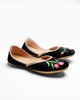 Dil-e-Mehfil is an exquisite handmade floral Khussa consisting of a black velvet base in contrast with the detailed embellishments on it. Dil-e-Mehfil has one main flower in the front of the Khussa consisting of zari work along with beads and sequences in shades of gold, light pink and pearl white. Floral vines are skillfully embellished in a similar zari, and bead work along with iridescent sequences to add to the royal look of the Khussa.