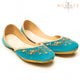 The fusion of the pastel light blue hue, the vibrant pink and gold embroidery, and the dazzling stones create an eye-catching contrast, making the khussa a truly exquisite masterpiece. Whether paired with traditional attire like sarees, lehengas, or shalwar kameez, or even with contemporary outfits, this khussa will undoubtedly be the center of attention, celebrating the beauty of age-old craftsmanship and timeless fashion.