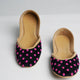 Crafted with top-quality materials, it is designed for all-purpose wear, ideal for any occasion or everyday use. The outsole is fashioned from premium rubber, ensuring not only comfortable walking but also slip resistance, providing added safety and peace of mind. This khussa/ Ballet flat is built to last, fashioned from pure hand processed leather that will withstand the test of time. The inner sole features a luxurious velvet lining, making it incredibly comfortable and snug for your feet.