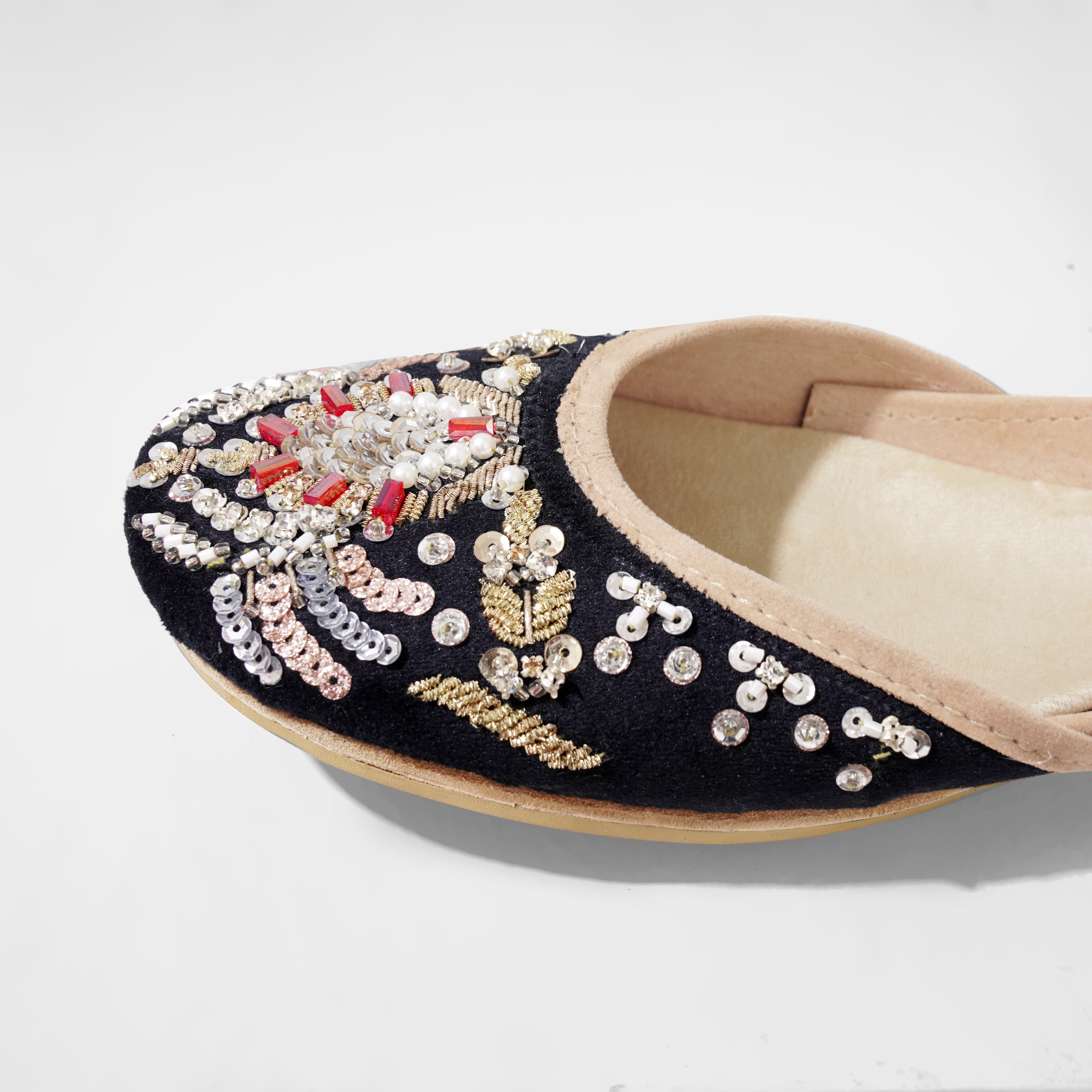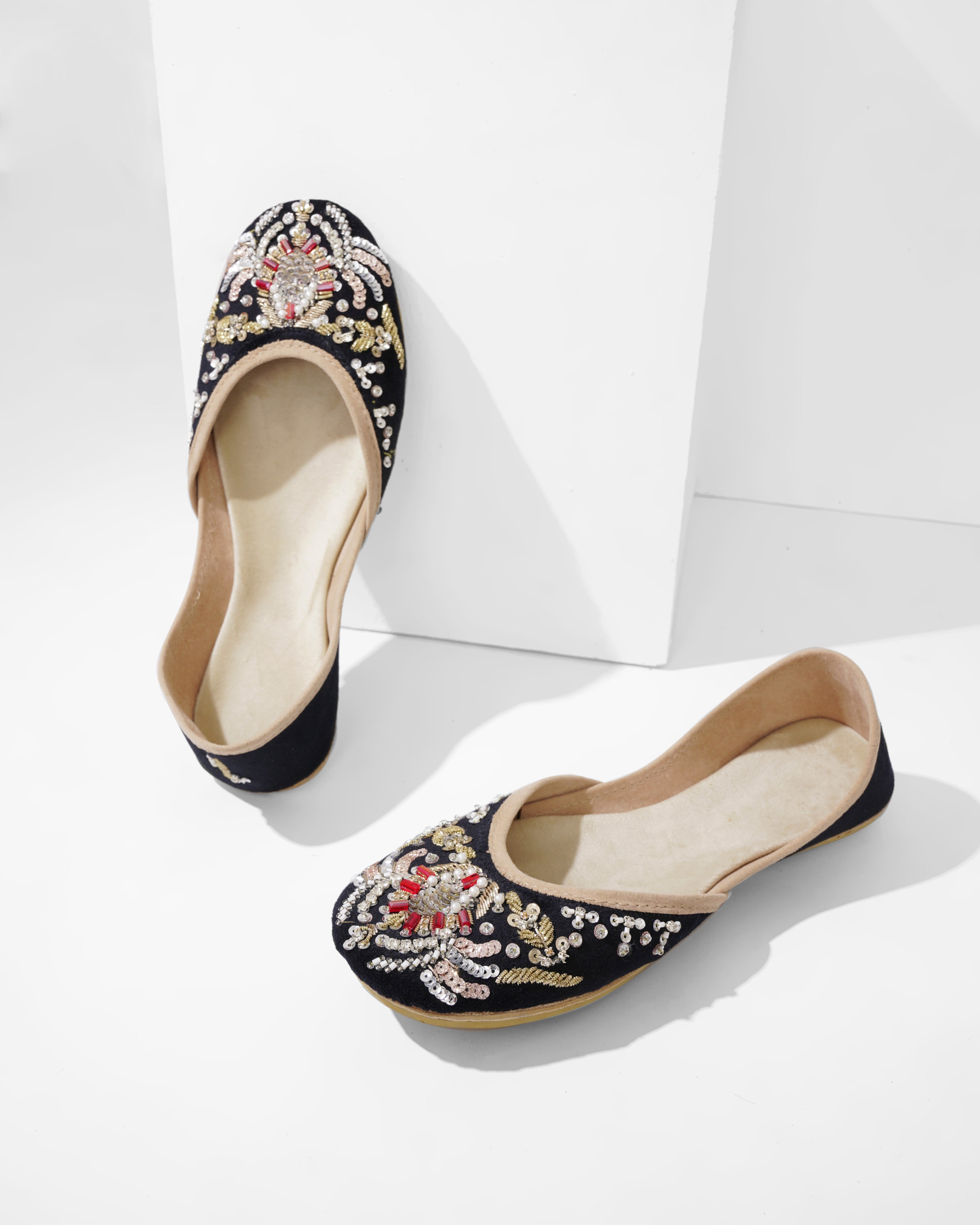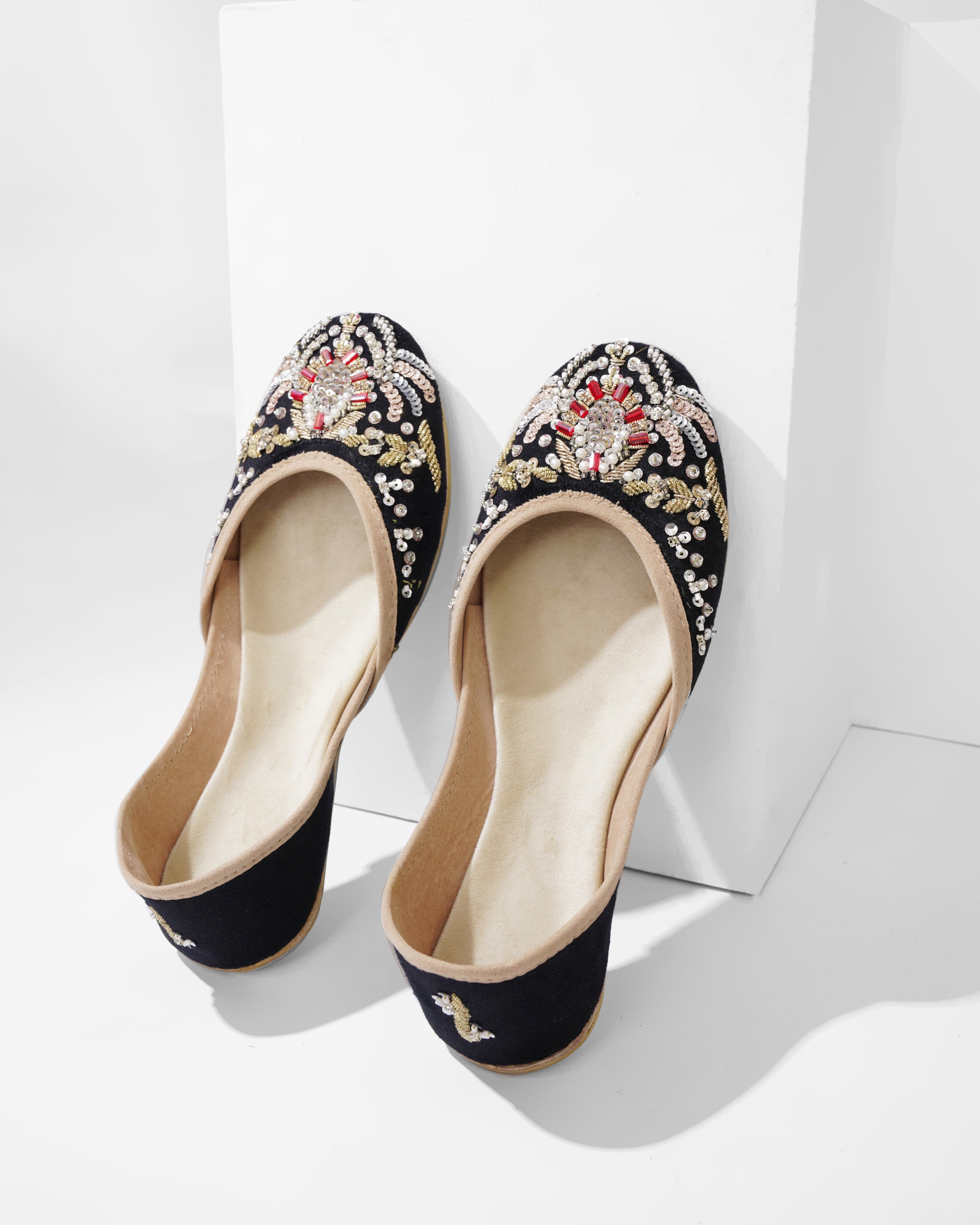 Crafted with top-quality materials, it is designed for all-purpose wear, ideal for any occasion or everyday use. The outsole is fashioned from premium rubber, ensuring not only comfortable walking but also slip resistance, providing added safety and peace of mind. This khussa/ Ballet flat is built to last, fashioned from pure hand processed leather that will withstand the test of time. The inner sole features a luxurious velvet lining, making it incredibly comfortable and snug for your feet.