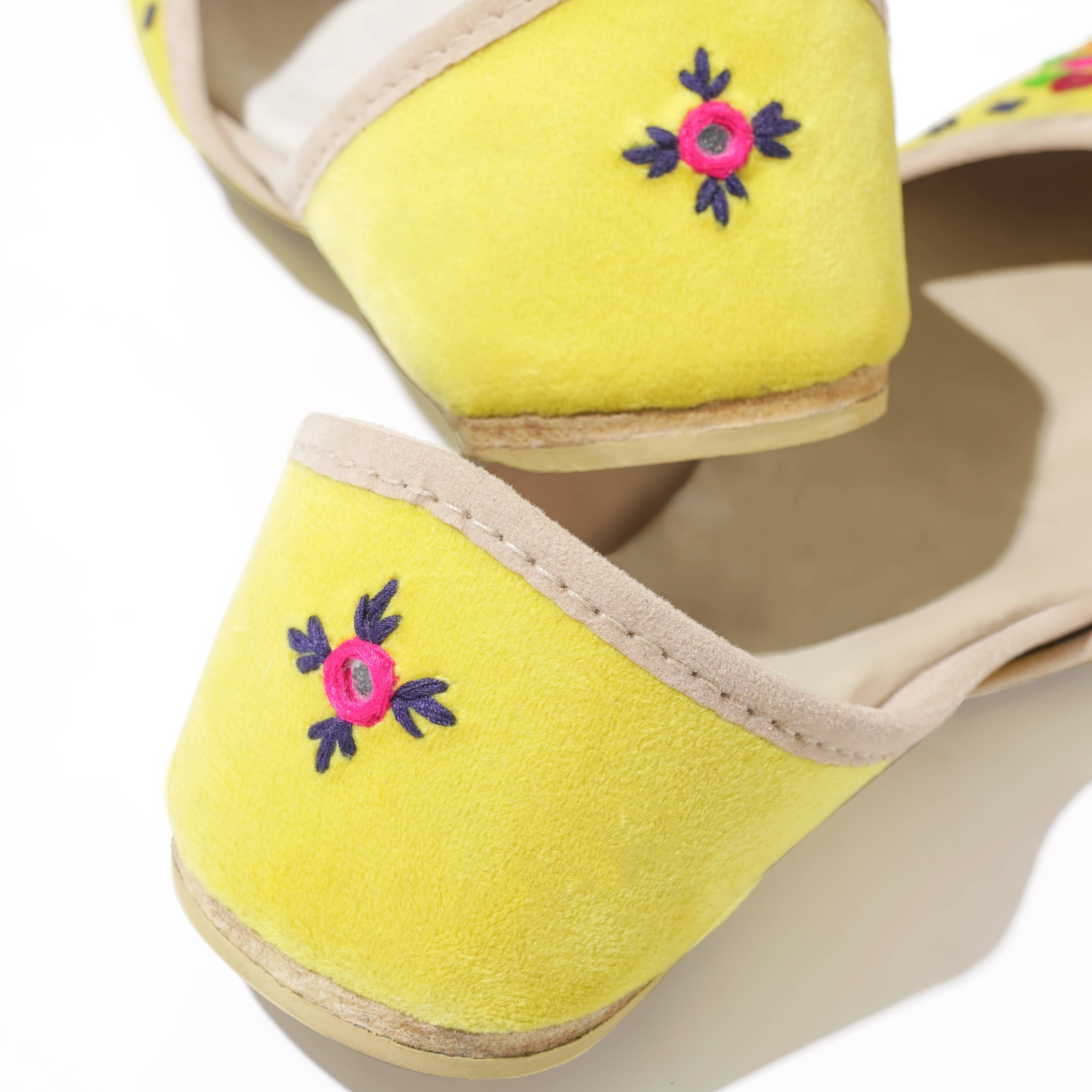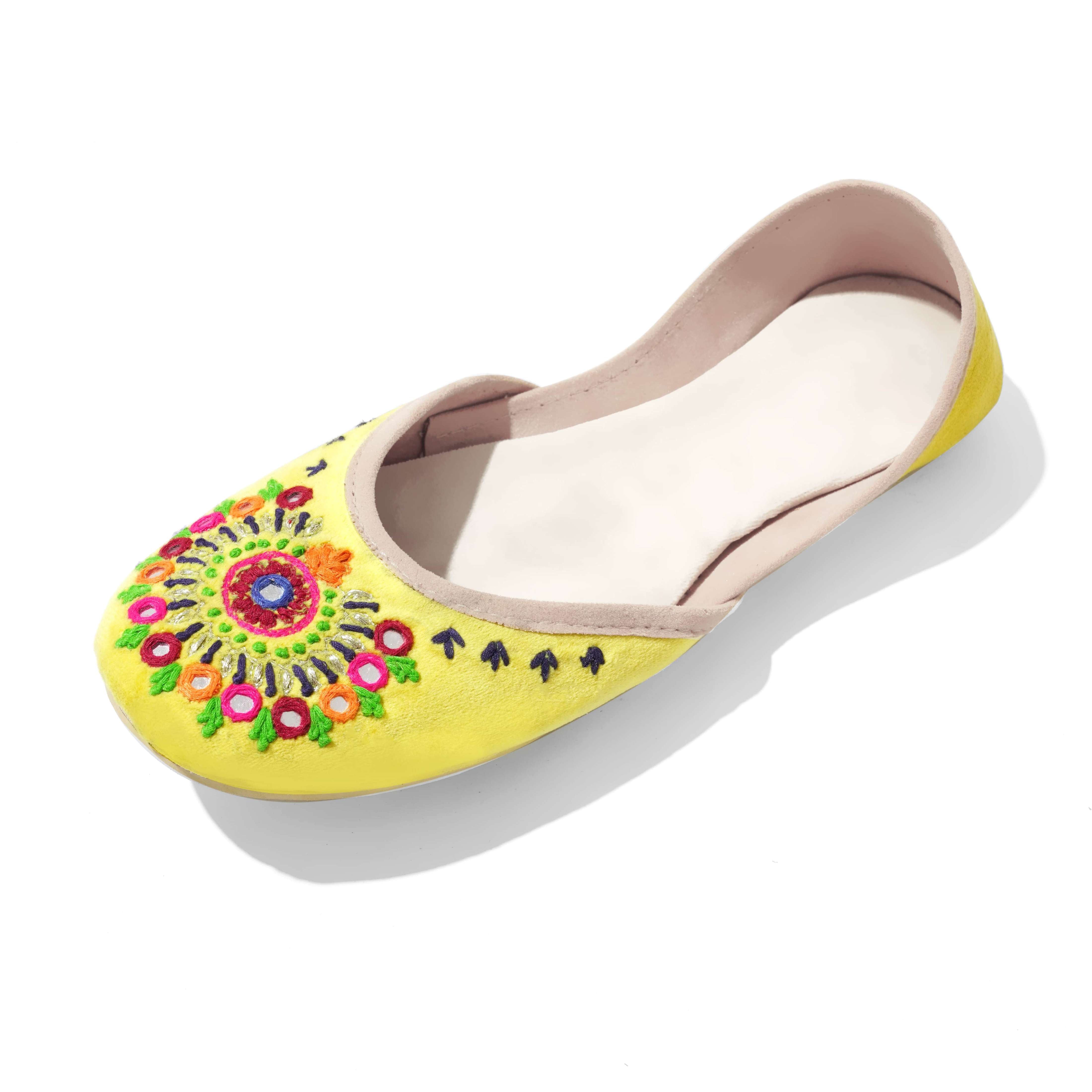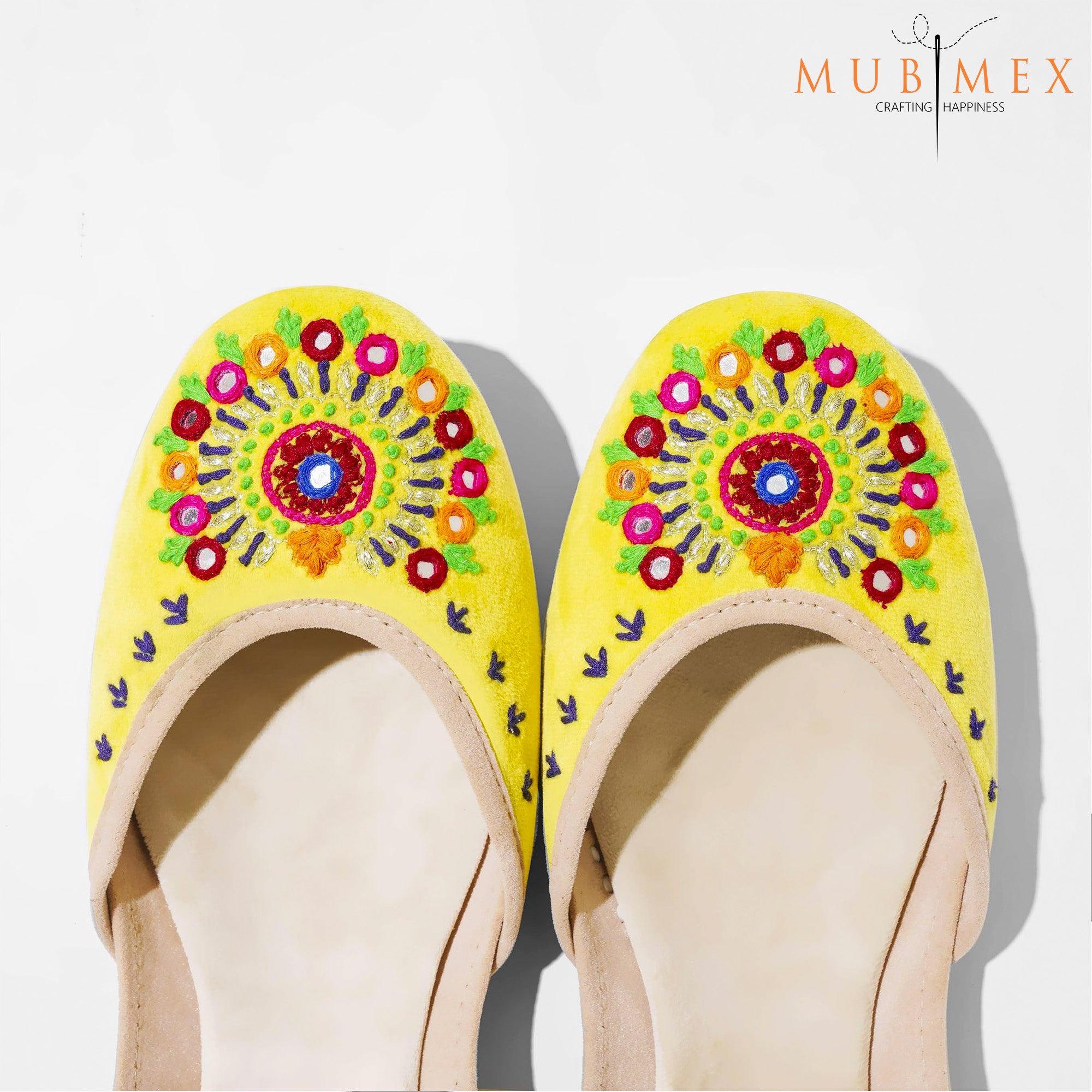 Basanti is a festive inspired rajashtani Khussa. It is an explosion of colors and radiates happy vibes. Basanti is the perfect choice for a day where you need something to brighten up your day. From colorful embroidery in orange, blue, green and pink adorned to mirror work. With over 40 hours of craftsmen-ship Basanti goes all out on making an impact.