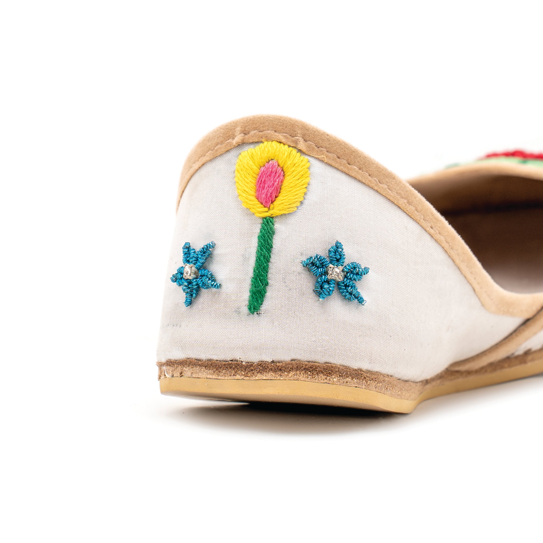 Rooted in the heart of Indian culture, the Hand-Embroidered Orange Khussa bears the essence of festivity and celebration. The fusion of vibrant colors represents the jubilation of life's moments, while the hand embroidery honors the legacy of skilled artisans who have kept this art alive for centuries. By wearing this Khussa, you embrace the spirit of cultural preservation and pay homage to the artistic heritage of the land. Its hand stitched and with its versatility and timeless allure, the Hand-Embroidered Orange Khussa effortlessly elevates your style. A perfect complement to ethnic ensembles like lehengas, anarkalis, or sarees, it exudes elegance on special occasions and cultural gatherings. Meanwhile, the graceful charm of this Khussa adds a touch of uniqueness to casual attire, making it an ideal choice for everyday wear or bohemian-inspired outfits. Embrace the fusion of tradition and contemporary flair as this Khussa seamlessly adapts to any occasion.