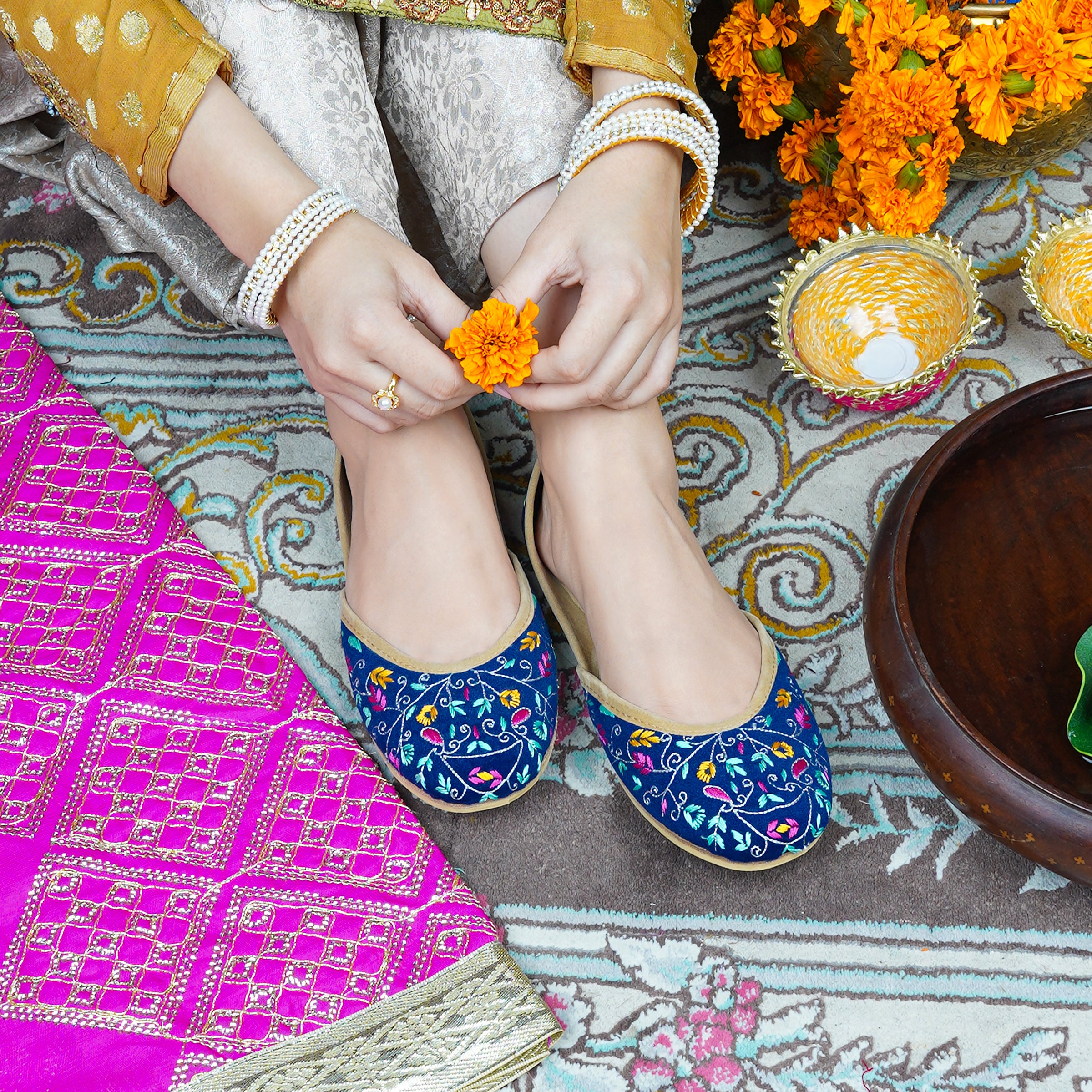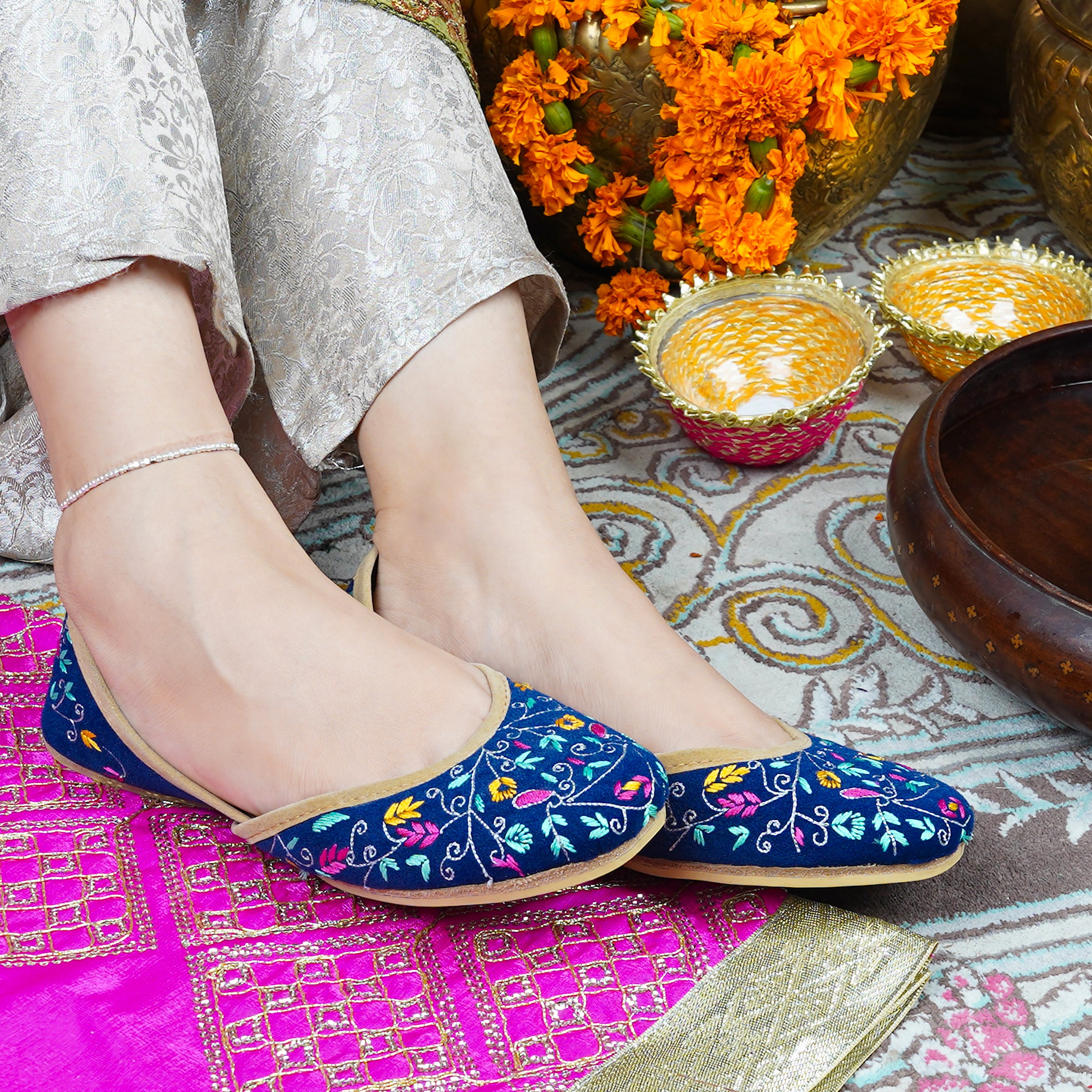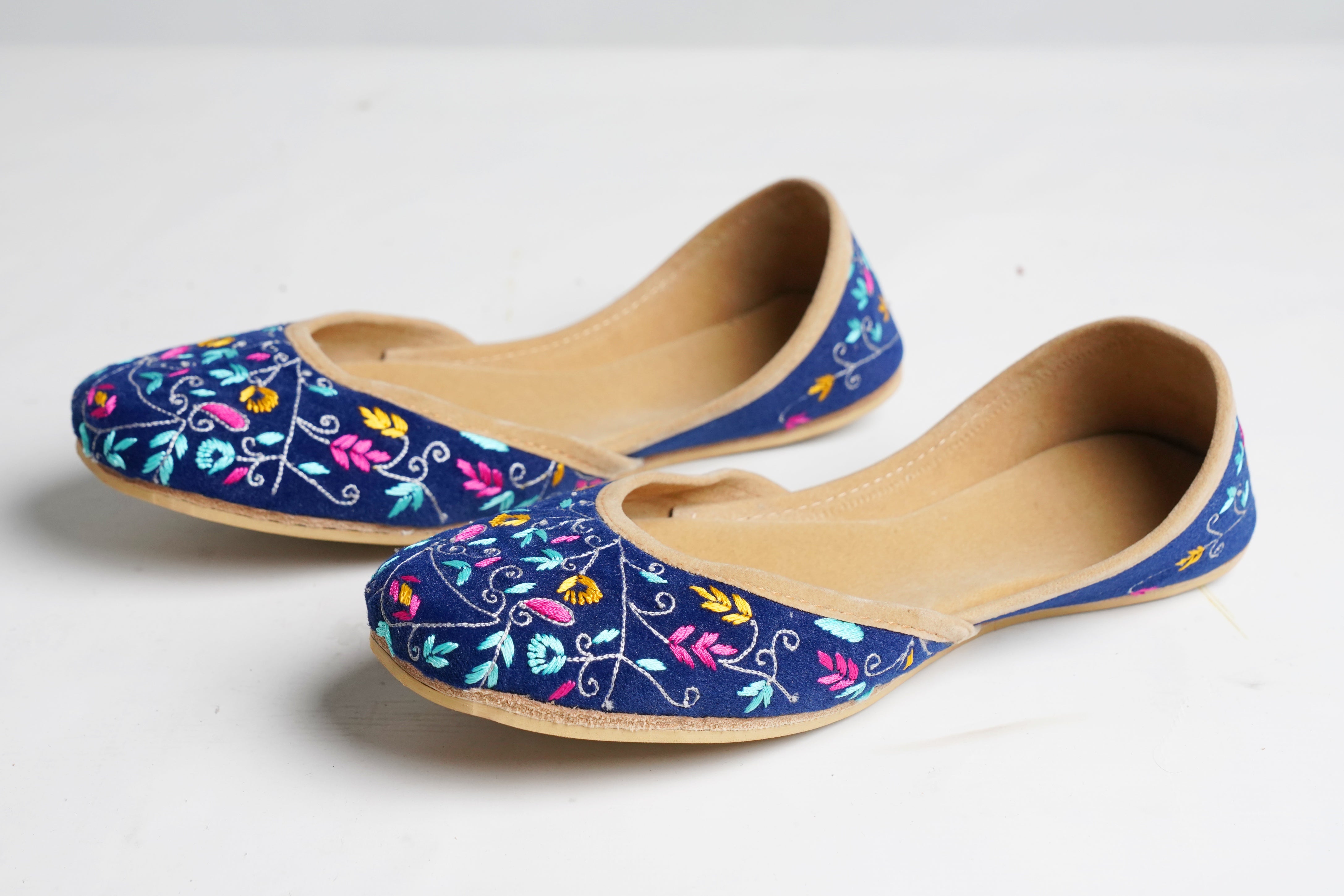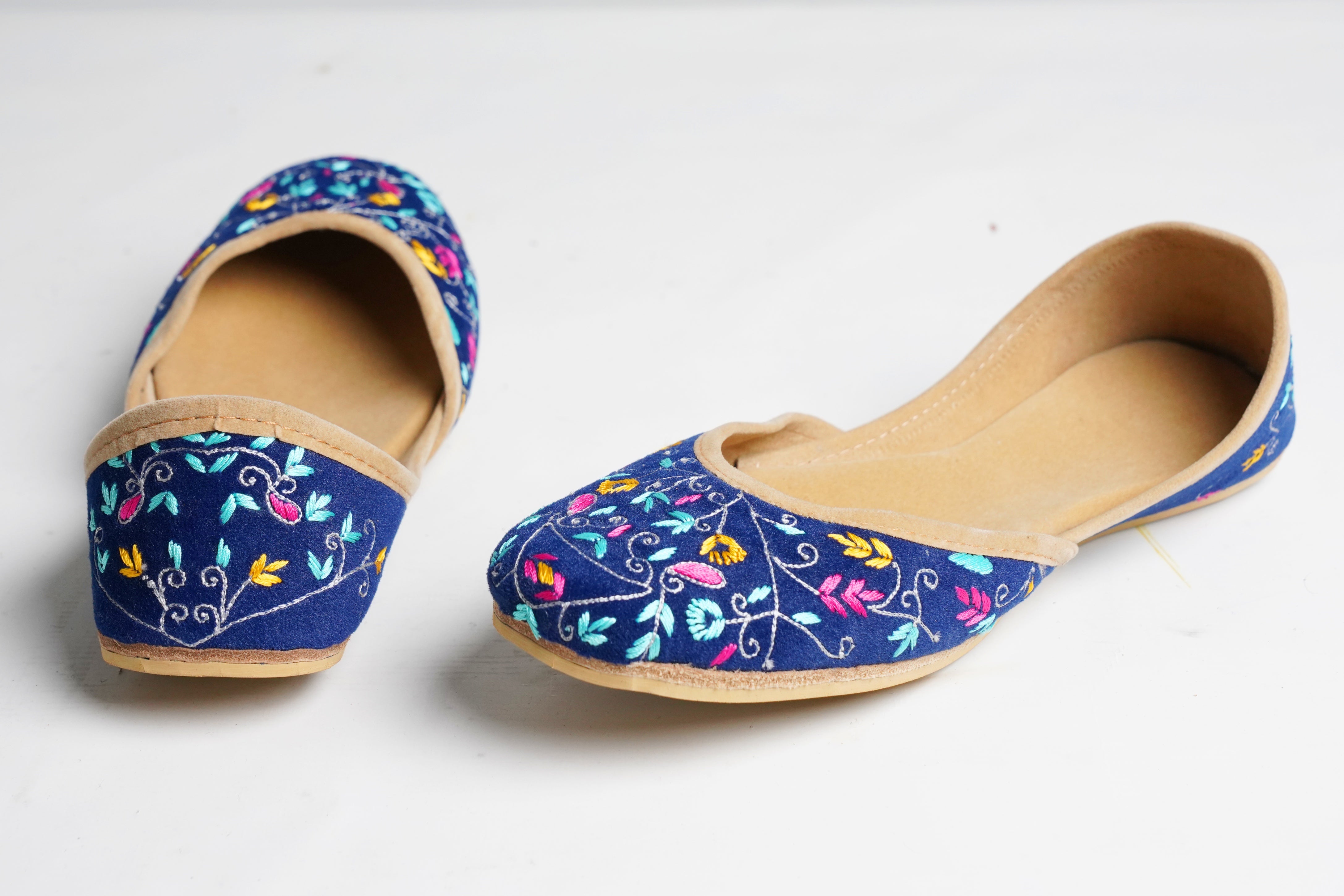 Crafted with top-quality materials, it is designed for all-purpose wear, ideal for any occasion or everyday use. The outsole is fashioned from premium rubber, ensuring not only comfortable walking but also slip resistance, providing added safety and peace of mind. This khussa/ Ballet flat is built to last, fashioned from pure hand processed leather that will withstand the test of time. The inner sole features a luxurious velvet lining, making it incredibly comfortable and snug for your feet.