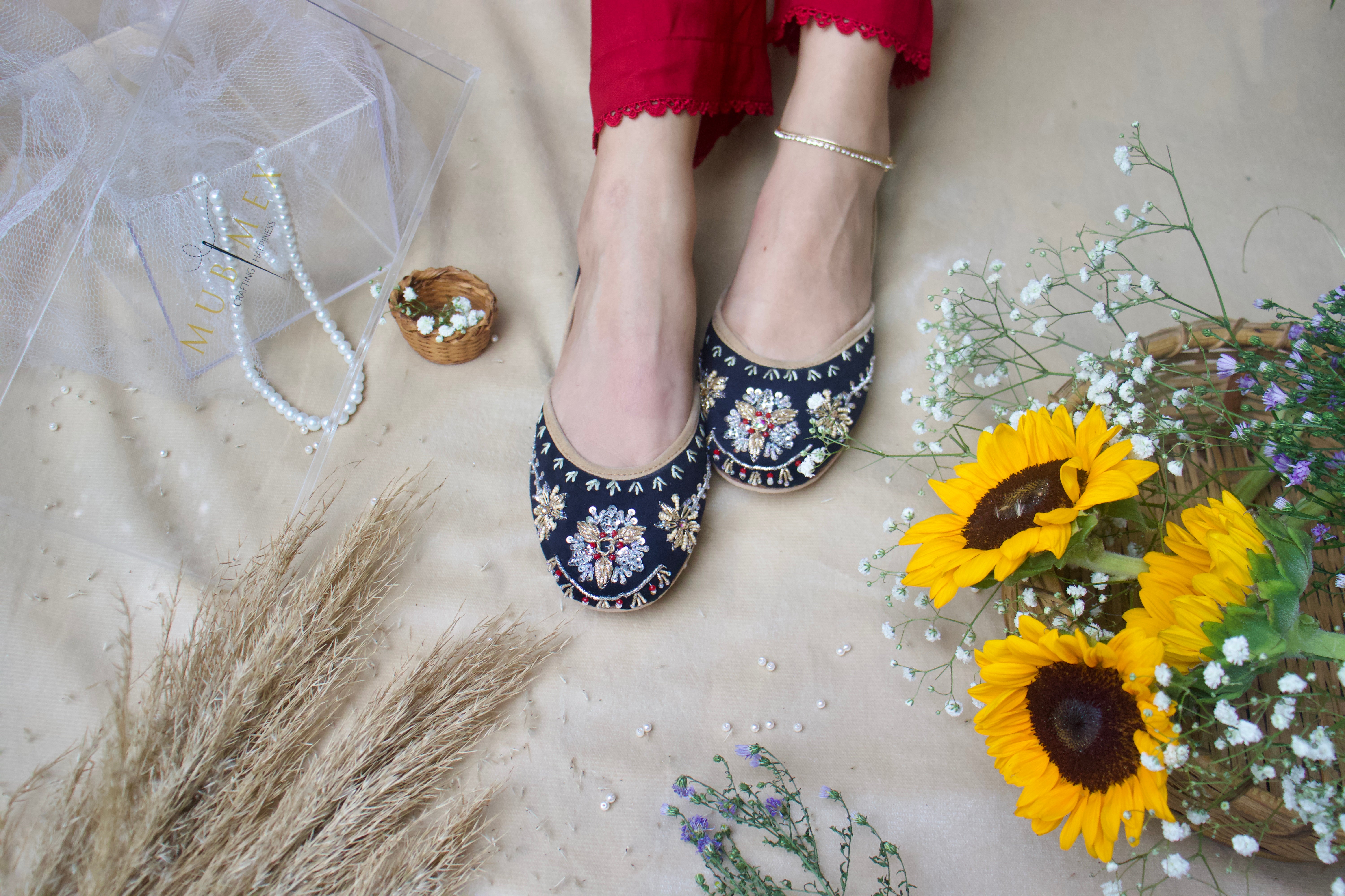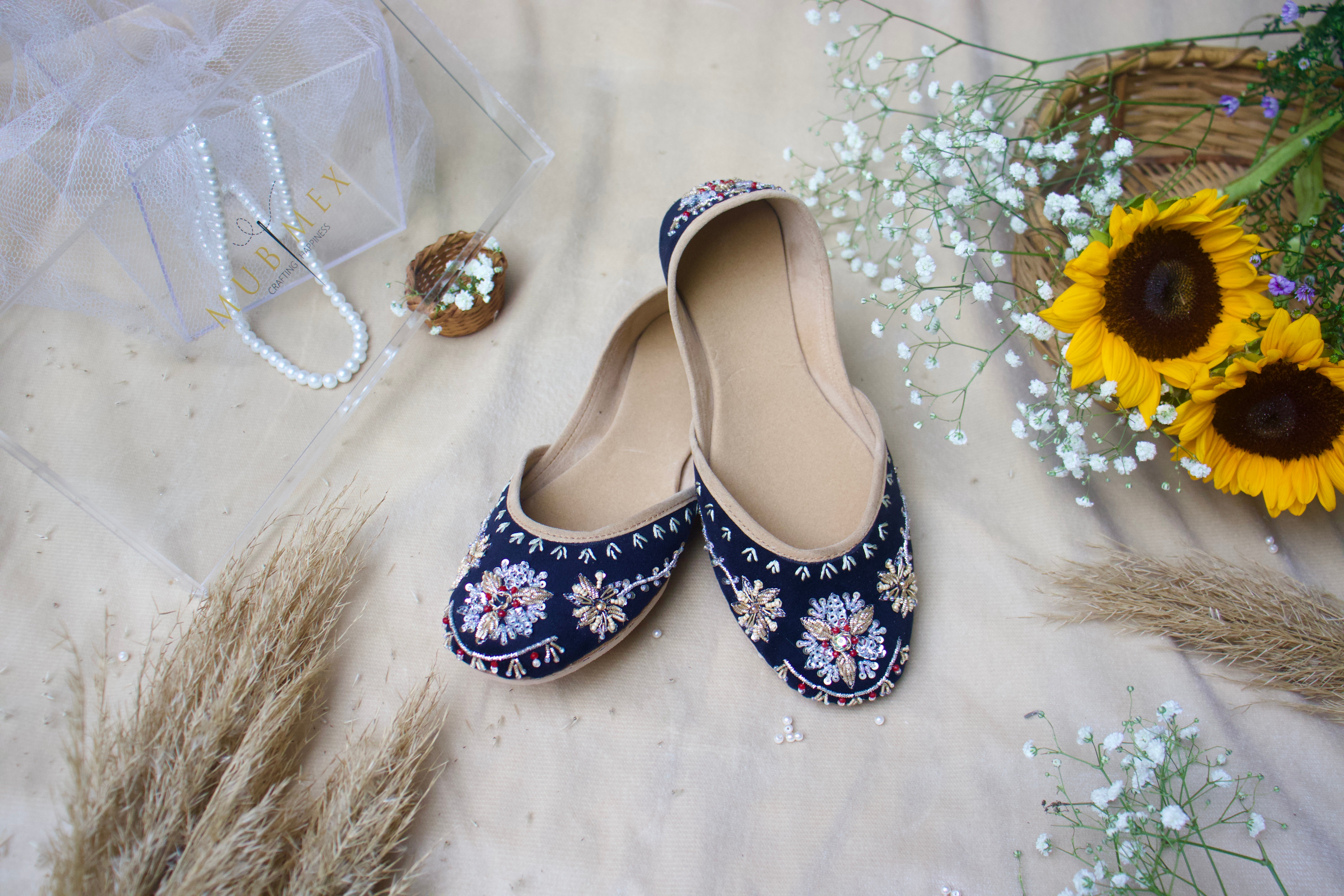 Crafted with top-quality materials, it is designed for all-purpose wear, ideal for any occasion or everyday use. The outsole is fashioned from premium rubber, ensuring not only comfortable walking but also slip resistance, providing added safety and peace of mind. This khussa/ Ballet flat is built to last, fashioned from pure hand processed leather that will withstand the test of time. The inner sole features a luxurious velvet lining, making it incredibly comfortable and snug for your feet.